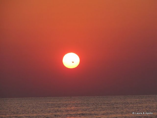 Dimineata Laura ma trezeste ca sa vedem rasaritul. In Bucuresti soarele nu rasare. Apare de dupa blocul de peste drum. Aici se ridica maiestuos din apa marii.