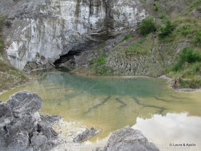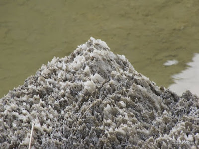 De la mina plecam in cautarea unui restaurant, unde servim mititei si cartofi prajiti. Mergem sa cautam muntele de sare, rezervatie geologica si arie protejata. Gasim o poteca ce pare sa urce pe deal, dar nu e drumul bun. Se intra prin restaurantul „Grota Miresei”, taxa de intrare 7 lei. Aici sunt mai multe mine prabusite in care s-au format lacuri. Baia Baciului e un fel de strand cu apa sarata, atat de sarata incat nu te poti scufunda nici daca vrei (n-am testat pe pielea mea, am observat pe altii). Baia porcilor (doar numele e de ea, nu e nici un purcel acolo) e un lac micut plin cu namol. Peste un gard de sarma se vede ce-a mai ramas din muntele de sare. In ultima vreme mare parte din el s-a prabusit intr-un mic lac de la poale, iar din Grota Miresei n-a ramas decat un perete. Eu nu prea m-am lamurit cum e cu legenda asta. Unele variante spun ca o femeie s-a sinucis la 4 zile dupa nunta aruncandu-se de pe muntele de sare in grota, altele ca s-a sinucis pentru ca parintii voiau s-o marite cu de-a sila, altele ca e o printesa care plangea dupa printul ei… singura parte comuna e cu sinuciderea.