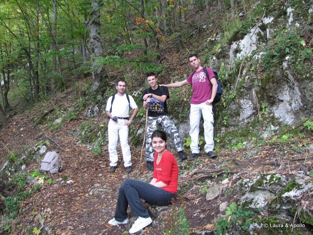 Am ajuns la Brasov pe la 12, cu o intarziere de numai 30 de minute. Adica in 3 ore si jumatate am facut 160 de km, la un pret cu care am fi platit benzina pana la Timisoara. In sfarsit, cum zicea nasu’, sa fim multumiti ca ajungem. La gara asteptam autobuzul care sa ne duca in centru. Pe la 12:30 incepem urcusul pe Tampa., pe Drumul Serpentinelor. Traseul e usurel, mai facem cate o poza, trecem apoi pe Drumul Cavalerilor (tare as vrea sa stiu de unde a aparut numele asta), pana in Saua Tampei, unde facem pauza de masa. Continuam apoi pe niste poteci largi (marcaj banda albastra), atat de largi incat puteau fi parcurse lejer cu masina, si tot atat de inclinate ca aleile din parcul Herastrau. „Bucuria” n-a tinut mult, si am inceput urcusul. Acum parca mai seamana a munte. Trecem de Poiana Stechil, si cum mergeam noi bucurosi prin padure dam fix in mijlocul potecii de o gramajoara… si cum calul si cainele nu prea mananca afine si mure, am tras rapid concluzia ca prin zona a umblat cu foarte putin timp inainte Mos Martin. Treaba asta ne-a alungat brusc orice urma de oboseala, si am incercat sa punem cat mai multa distanta intre noi si locul cu pricina. Dupa ce ne-am mai linistit un pic am inceput iar sa admiram peisajul… pana am ajuns intr-o padure foarte intunecoasa, in care toti brazii erau uscati complet cam 2 metri deasupra pamantului, decor care ne-a inspirat o scena dintr-un film de groaza. Am bagat turbo si pe bucatica aia si dupa cateva minute am iesit in Poiana Ruia, unde ne-am oprit iar pentru „alimentare”. Cand am terminat cu papa am continuat drumul spre cabana Postavaru, nimerind la un moment dat fix pe partia de ski. Spre norocul nostru, schiorii inca mai asteapta prima zapada, asa ca n-au fost victime. In total drumul a durat cam 6 ore, cu tot cu 2 pauze marisoare (in total cam o ora), un pic cam mult comparativ cu timpul de pe marcajul din Brasov, de 3 ore si jumatate.