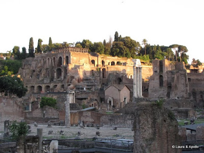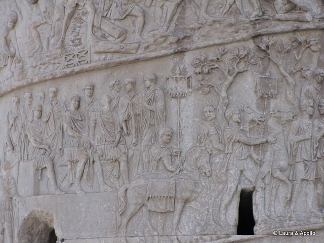 Am mai mers putin si am ajuns in zona forului roman, iar primul lucru care ne-a aparut in fata a fost Columna lui Traian. Atata numai ca in varf nu mai e statuia lui Traian de cateva sute de ani. Un papa grijuliu a inlocuit-o cu statuia Sfantului Petru. E ciudat ca unele parti din columna s-au pastrat foarte bine, iar altele sunt foarte deteriorate. Stand fata in fata cu Columna la doar cateva luni dupa ce am vizitat replica de la Muzeul de Istorie, mi-am adus aminte de povestea lui Badea Cartan. Din nefericire, forul lui Traian e in renovare si nu l-am putut vizita, asa ca ne-am multumit sa-l admiram de sus. De aici se vede bine si piata lui Traian cu Turnul Militiilor, pe care le-am lasat pentru alta zi. Nici acolo n-am mai ajuns.