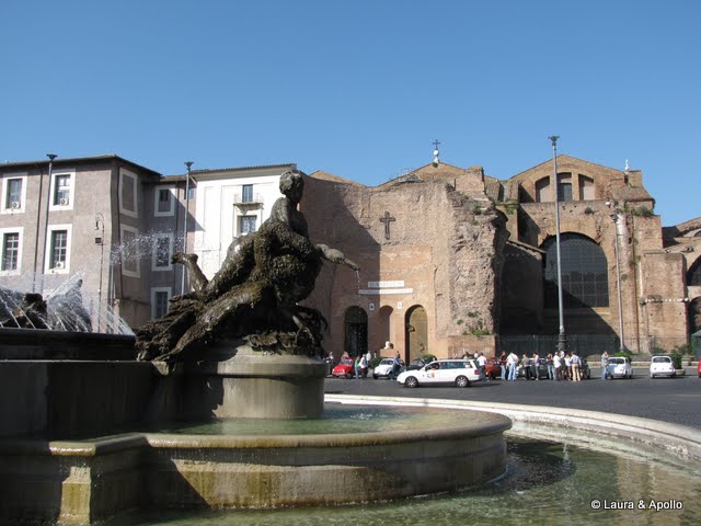 Iesind din biserica am incercat sa traversam strada, ca sa ajungem la o fantana din mijlocul pietei. Cu ocazia asta am aflat ca trecerile de pietoni sunt mai mult ornamentale, pentru ca nimeni nu opreste, iar traversatul strazii e o adevarata arta. Am facut vreo doua poze cu fantana, care n-au prea iesit pentru ca lumina era foarte puternica. Am pornit mai departe pe strazi, fara vreo tinta. Am intrat intr-un parculet dintre case, apoi prin fata teatrului si a Bancii Nationale a Italiei, si am ajuns la ruinele unei vile antice, transformate in parc. Si in mai toate parcurile cresc portocali.
