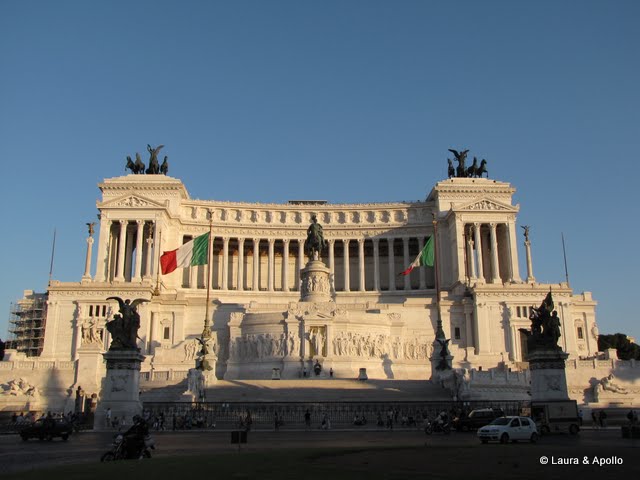 Langa forurile imperiale se afla Piata Venezia. Aici se inalta un monument imens dedicat lui Victor Emanuel al II-lea, unificatorul Italiei, care e intr-adevar impresionant. De langa monument se vede Colosseum-ul. Strada care merge din Piata Venetia spre Piata Colosseum-ului este incadrata pe ambele laturi de ruinele Romei antice. Pe un perete este chiar o harta cu extinderea Impreriului de-a lungul timpului. In zonele turistice sunt o multime de rulote care ofera sucuri, dulciuri, si nu in ultimul rand, inghetata. Apropo, dupa ce mananci inghetata in Italia, nu vei mai privi niciodata cu aceiasi ochi inghetata care se gaseste in Romania. Intr-adevar este scumpa (2E cea mai mica), dar este delicioasa.