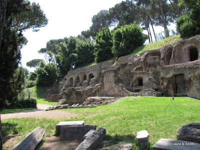 De aici ne-am indreptat spre Colina Palatina. Legendele spun ca in acest deal era pestera in care lupoaica i-a crescut pe Romulus si Remus. Mai tarziu aici au fost construite palatele imparatilor Romei. La poatele colinei se afla forumul roman, centrul orasului antic. Coada la bilete era mult mai mica aici decat la Colosseum (biletul de la Colosseum este valabil si pentru Colina Palatina, asa ca cei care nu vor sa stea ore in sir la coada pot sa cumpere biletul de aici). Peste tot sunt tasnitori cu apa potabila, foarte utile pe timp de vara. Apropo, apa din Roma e foarte buna, nu prea am simtit nevoia sa cumparam suc sau apa imbuteliata, iar fantanile sunt peste tot. Nici nu incape comparatie cu apa care curge la robinet in Bucuresti.