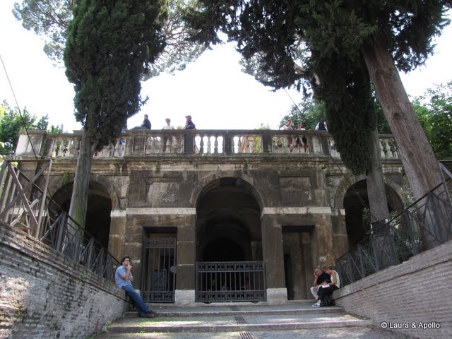 Pe drum am trecut pe langa un alt amfiteatru antic, Teatro di Marcello. E ceva mai mic decat Colloseum-ul, iar la etajele superioare sunt locuinte (cum o fi sa bata vantul pe sub casa ta?). Cand am trecut pe langa el tocmai se pregatea un spectacol de pian (se pare ca acustica e foarte buna). Mai departe am ajuns la Poarta Octaviei, una din portile prin care se putea intra in Roma, incadrata de ruinele catorva temple, unul din ele dedicat lui… Apollo. In perioada evului mediu, aici era piata de peste. Am traversat apoi raul Tibru, trecand peste podurile ce leaga Insula Tiberina de cele doua maluri. Langa insula se afla ruinele celui mai vechi pod de piatra din Roma, Ponte Rotto (podul stricat), construit in secolul 1 ien. O parte din pod a fost luata de ape la sfarsitul secolului XVI, iar o alta parte a fost demolata in secolul XIX; acum se mai vede numai un singur arc.