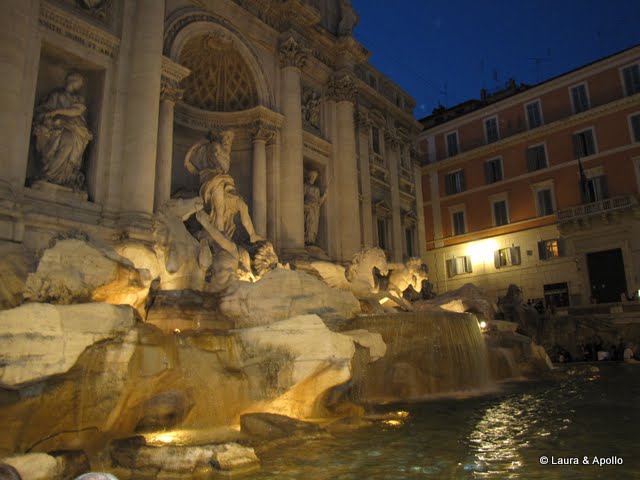 Am privit fantana pana tarziu in noapte si am fotografiat-o din toate unghiurile. Multimea de turisti care se inghesuie in fiecare seara in jurul ei este un dezavantaj, dar sunt convins sa in timpul zilei nu are acelasi farmec.