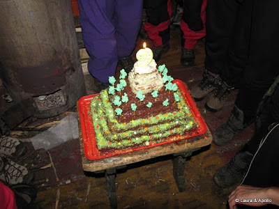 Pe la ora 11 au ajuns in sfarsit Leo si Osmoza, care au plecat dupa pranz din Bucuresti. Acum ca era prezenta toata lumea, Ancuta ne-a prezentat si surpriza: un tort cu 9 etaje (ca doar Ursul a implinit 9 anisori), care a fost carat pe bucatele si in mare secret. Am continuat cu cantece si voie buna pana tarziu in noapte.