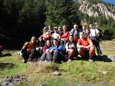 Dimineata am mancat, am facut o poza de grup (cati mai eram, ca unii au fost mai matinali si au plecat mai devreme), si am plecat incetisor spre masini. Partea buna era ca gheata care se formase in timpul noptii se topise. Partea mai putin buna a fost ca era mult noroi. In sfarsit, pana la urma am ajuns jos, unii pe drumul pe care am urcat, altii, care au vrut sa incerce ceva nou, pe Muchia Dragusului.