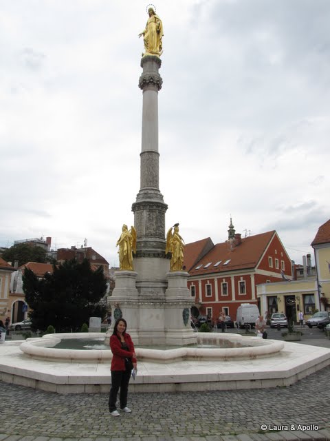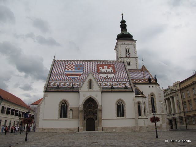 De la catedrala am traversat piata, de unde am cumparat niste piersici delicioase, si am admirat aranjamentele florale, care sunt specialitatea localnicilor. Pentru a urca pe varful dealului se poate folosi fie funicularul, fie scarile care urmeaza indeaproape traseul funicularului. De sus se deschide o panorama frumoasa asupra orasului. Aici se afla sediul parlamentului si muzeul orasului, alaturi de alte cateva muzee si galerii. In mijlocul orasului vechi se afla biserica Sfantul Marcu, cea mai celebra biserica din Zagreb, desprinsa parca din povesti. Acoperisul este un mozaic din tigla rosie, alba si albastra, reprezentand stemele Croatiei, Slavoniei, Dalmatiei, si Zagrebului, si dateaza din secolul 19. Din pacate nu am putut vizita interiorul, dar am tras totusi cu ochiul printr-un geam de la intrare. Cand am iesit din biserica a inceput sa picure, asa ca ne-am indreptat spre masina. Am trecut prin poarta de intrare in oras, transformata in altar inchinat Fecioarei Maria. Pana am ajuns la masina incepuse sa ploua bine, asa ca am plecat spre Varaždin. Din pacate am prins o aglomeratie teribila pe autostrada la iesirea din Zagreb. Intre timp a inceput si o ploaie torentiala care ne-a cam stricat planurile de a vizita castelele in acea seara. Ne-am intors deci spre Oroslavje, o statiune in munti unde aveam rezervata cazare pentru acea seara. Am tras un puiut de somn, apoi spre seara am iesit sa ne plimbam prin statiune, daca tot se oprise ploaia.