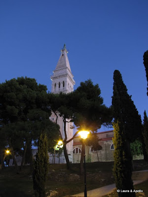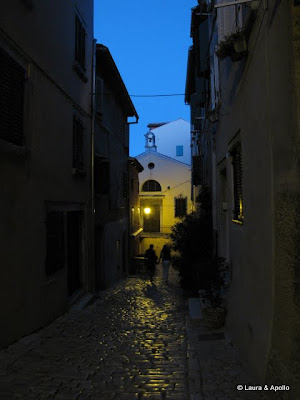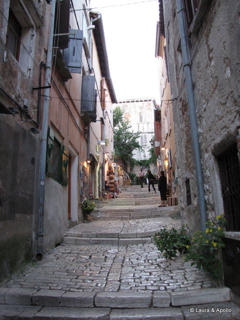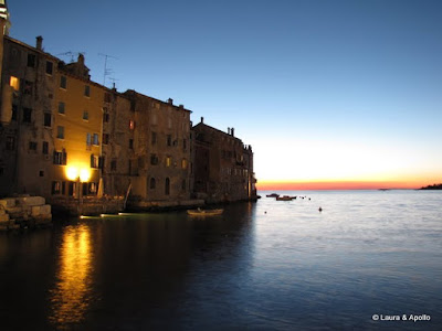 Inca vreo cativa kilometri s-au scurs si am ajuns la Rovinj. Rovinj e un orasel fermecator, cu o arhitectura ce aminteste foarte mult de Venetia, cu stradute inguste si intortocheate si cladiri cu fundatiile scaldate de apele marii. Orasul a fost construit initial pe o mica insula, dar in secolul 17 canalul care o despartea de continent a fost umplut. Noi am ajuns cand deja se apropia seara, asa ca am avut ocazia sa vedem cum se intorc barcile pescarilor in port inainte de apus. Ca in mai toate porturile croate, si aici sunt ancorate o multime de yachturi, majoritatea sub pavilion german. Am hoinarit pe stradute cautand drumul spre bisericuta de pe deal printre cladirile care purtau semnul leului inaripat. Bineinteles ca ne-am ratacit, dar asta face parte din experienta „venetiana”. Dupa ce am vizitat biserica ne-am cautat loc la o terasa mai neobisnuita (nu au mese si scaune, toata lumea sta pe iarba) ca sa admiram un apus magnific al soarelui peste Marea Adriatica. Rovinj este (acum) unul din locurile noastre preferate in Croatia. Dupa lasarea noptii am coborat inapoi spre port, lucru care e mult mai complicat decat urcatul pentru ca pietrele din care e facut pavajul sunt atat de lustruite incat aluneca mai bine decat gheata, si multi (a se citi „multe”) renuntau la incaltari ca sa nu aiba ocazia sa observe pavajul… mai de aproape.