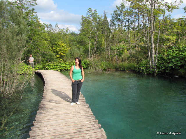 Am traversat soseaua, am mai schimbat niste bani, am cumparat biletele si am intrat. La prima vedere nu e nimic spectaculos aici, dar impresia e contrazisa de sutele de turisti (majoritatea germani) care se inghesuie pe potecile inguste. In parc sunt mai multe trasee de vizitare, unele mai scurte, care acopera doar zona aglomerata a lacurilor de jos, si altele mai lungi, care ajung pana la ultimul lac (distanta pana acolo e de vreo 8 km). Noi am ales unul din traseele lungi (traseul C, mai exact), adica am mers pe jos pana la capat, am traversat lacul cu vaporasul, si ne-am intors cu trenuletul. Teoretic trebuia sa dureze 4-6 ore, noua ne-a luat vreo 8, cu pauza de masa (cam pe la mijlocul drumului, langa debarcader e o zona pentru picnic) si multe pauze de poze. In jurul lacurilor de jos era aglomeratie foarte mare, dar pe masura ce ne indepartam de intrare am intalnit tot mai putini oameni, iar pe langa ultimul lac eram doar noi, padurea, si un animal care urla pe un deal din apropiere (dupa „voce” era lup, presupunere care ne-a facut sa grabim putin pasul).