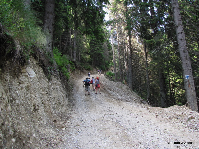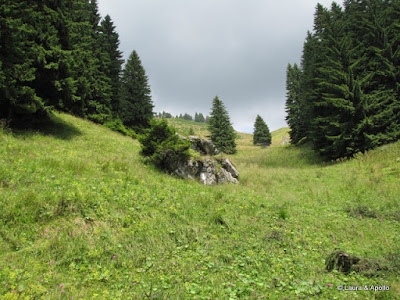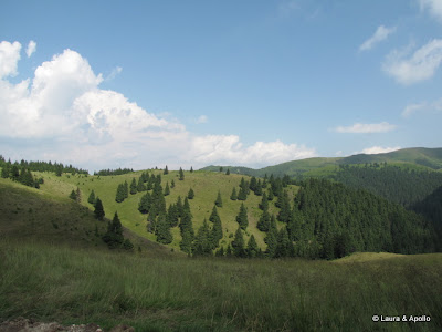 Nu era tarziu, insa norii si tunetele ne-au alungat inapoi spre Muntele Rosu. De data asta ritmul a fost mult mai alert, dar am reusit sa ajungem la cabana uscati si flamanzi. Eu am jucat din nou rolul negativ, insistand sa plecam mai departe ca sa nu ne prinda ploaia. Pana la urma am ajuns la o solutie de compromis: un rand de clatite. Am coborat la masini si ne-am intors la pensiune, unde am luat cina. In timp ce mancam ne-a ajuns din urma si ploaia de care fugisem pe munte, care a continuat pana dimineata. Din pacate bocancii mei scosi pe balcon la uscat erau total murati cand ne-am trezit. Norocul meu a fost ca am luat si adidasi.