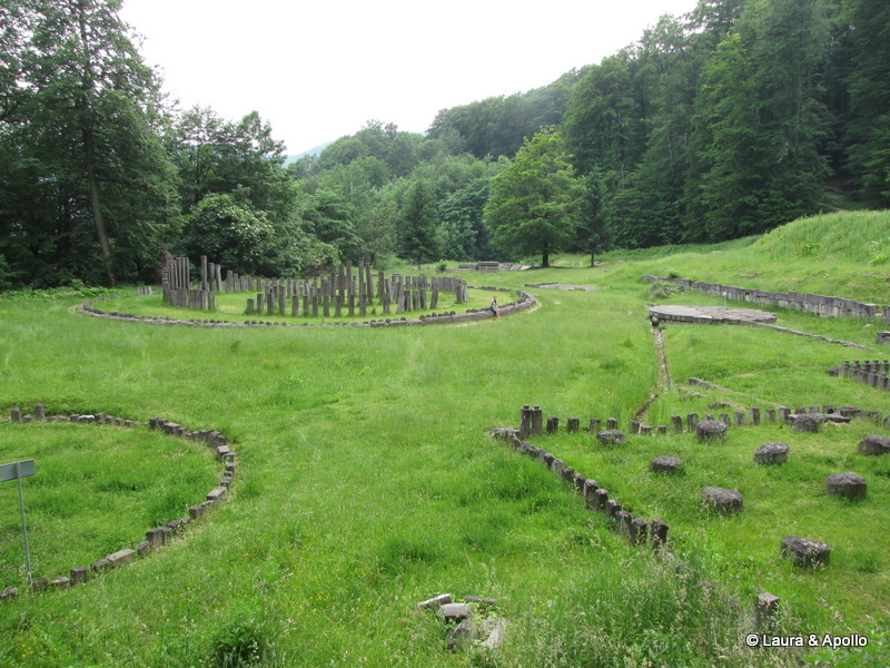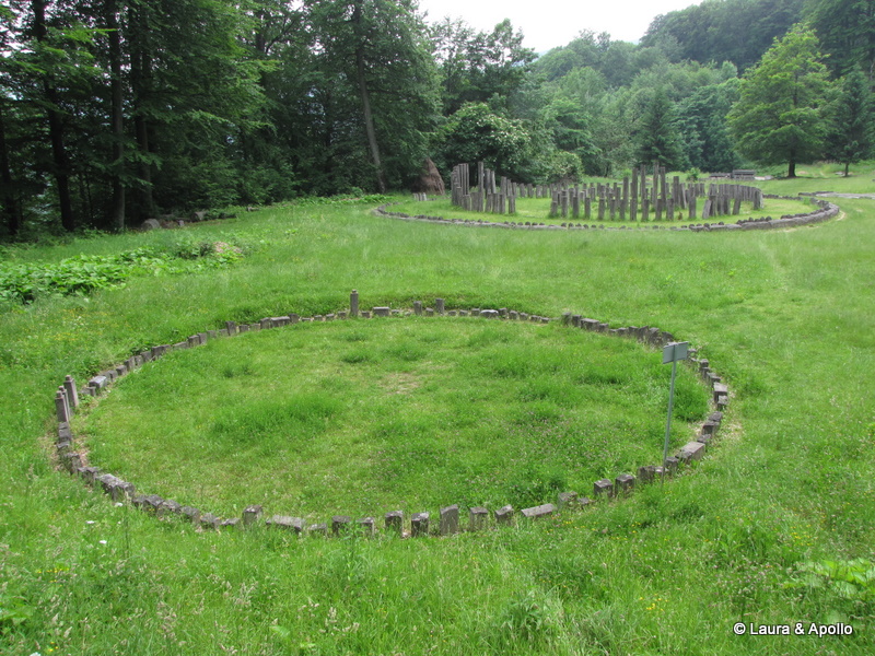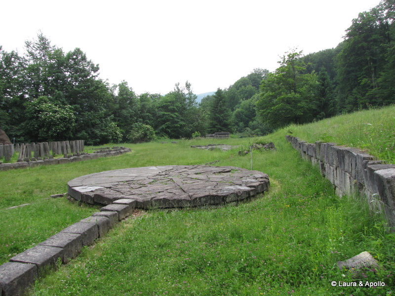 Am iesit din cetate pe poarta opusa si am descoperit drumul pavat care lega fortificatia de zona sacra. Sarmizegetusa era un centru religios important. Pe platoul de dincolo de ziduri se afla mai multe sanctuare care amintesc de complexul megalitic de la Stonehenge, si erau folosite pentru calcule astronomice sau ca altare. Cele mai cunoscute sunt sanctuarul mare circular, care era folosit drept calendar, si „soarele de andezit„, a carui semnificatie nu este cunoscuta. Terasa e strabatuta de un izvor, care ne-a racorit si pe noi cu o gura de apa proaspata si rece. La intoarcere, cand am trecut din nou printre copacii din cetate am inteles de ce dacii se credeau nemuritori.