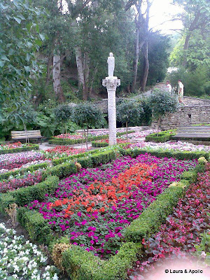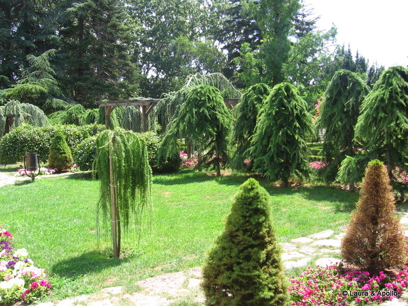 Gradina ocupa tot dealul pe care este azezat castelul, este strabatuta de un izvor, si adaposteste alte 9 cladiri, fiecare din ele cu o destinatie bine stabilita. Parcul a fost amenajat la comanda Reginei de cei mai buni gradinari si arhitecti ai vremii. Autoritatile bulgare au transformat-o in gradina botanica, din cauza celor 3000 de specii rare de plante care cresteau aici. Gradina botanica din Balcic este vestita pentru colectia deosebita de cactusi, una din cele mai importante din Europa. In mijlocul unei gradini de trandafiri se afla si Stella Maris, o micuta capela ortodoxa pictata in interior. Regina si-a dorit ca inima ei sa ramana aici, la Balcic, dar dorinta ei a fost indeplinita doar pentru scurta vreme. Romania a cedat orasul Bulgariei, iar caseta cu inima reginei a fost mutata la Bran, celalalt loc de suflet al suveranei. Nu departe se afla un mic tron de marmura. In acest loc din micul oras alb de pe malul Marii Negre, regina contempla nesfarsitul marii si nisipurile argintii din mijlocul unui adevarat paradis al florilor.