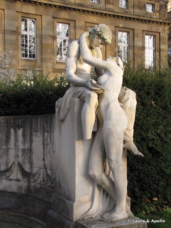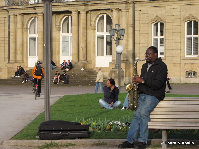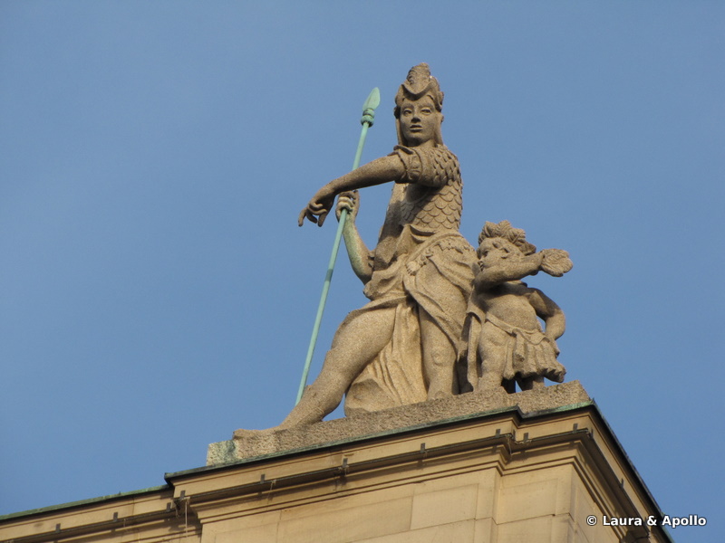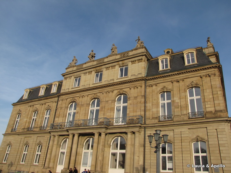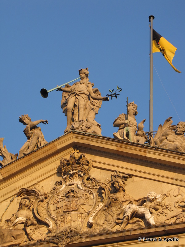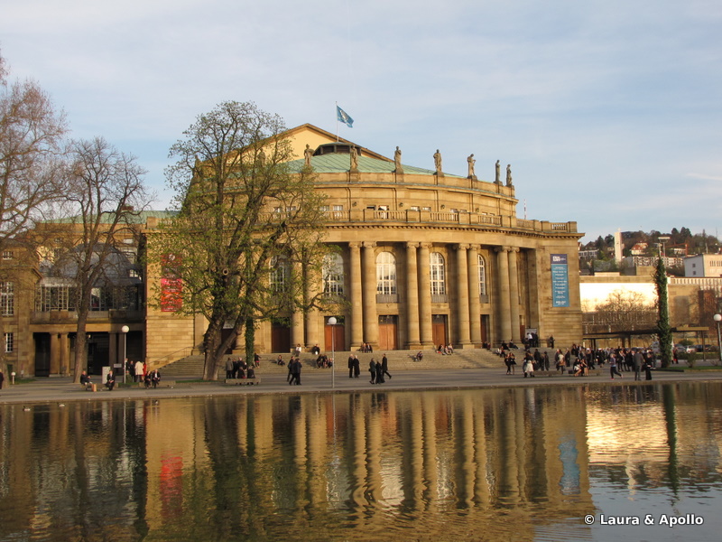 Trecand printre castel si cladirea artelor am ajuns in gradinile palatului. Pe malul unui mic lac pe care plutesc lenes niste rate se afla Opera (Staatstheater), una din putinele cladiri din centrul orasului care nu a fost atinsa de bombardamente.