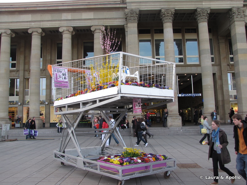 Dupa o luna, delegatia mea la Stuttgart se apropia de sfarsit. In ultima zi, dupa ce-am incheiat socotelile cu colegii de la munca, am plecat la aeroport ca s-o astept pe Laura. Aveam un weekend si doua zile de concediu la dispozitie ca sa vizitam orasul si imprejurimile. Am vazut cand a aterizat avionul si pe Laura coborand din el (avea o haina cu o culoare greu de confundat 😀 ), apoi m-am pus pe asteptat… si-am tot asteptat vreo 40 de minute, pana cand toata lumea a plecat, si cursa a disparut de pe panouri. Deja incepusem sa-mi fac griji, cand Laura a aparut in sfarsit si a declarat cu zambetul pe buze ca a avut nevoie de timp sa se improspateze putin :-). No comment.