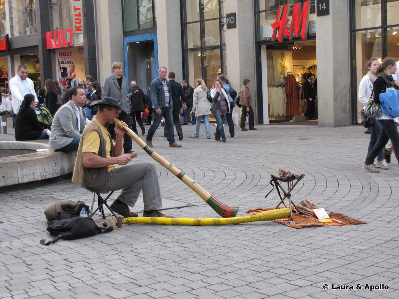 Dupa ce-am plimbat-o putin prin aeroport ca sa-i arat cateva avioane vechi expuse pe terasa, ne-am indreptat spre centru pentru o plimbare de seara (calatoria fara bagaje are si avantaje). Metroul ne-a lasat la gara centrala (Hauptbahnhof), si ne-am grabit sa urcam in turn ca sa vedem orasul de sus cat mai era inca lumina. Turnul e ceva mai intalt decat pare de jos, iar in varf se gaseste o sigla imensa a Mercedes, luminoasa si rotitoare, care e un punct de reper excelent. Chiar peste drum de gara se afla un punct de informatii turistice, unde se poate cumpara un ghid al orasului pentru 5 euro (si merita, dupa parerea mea).