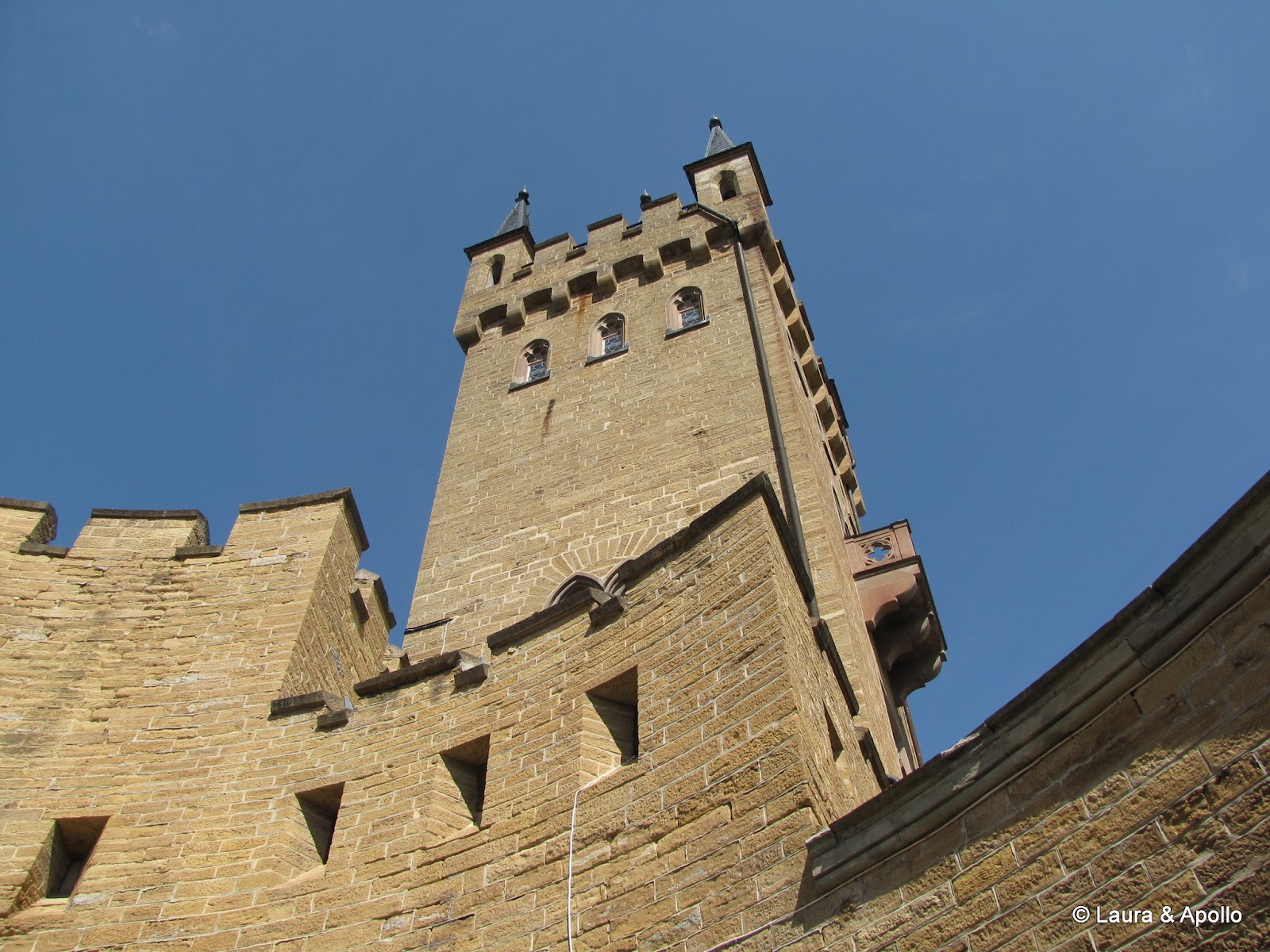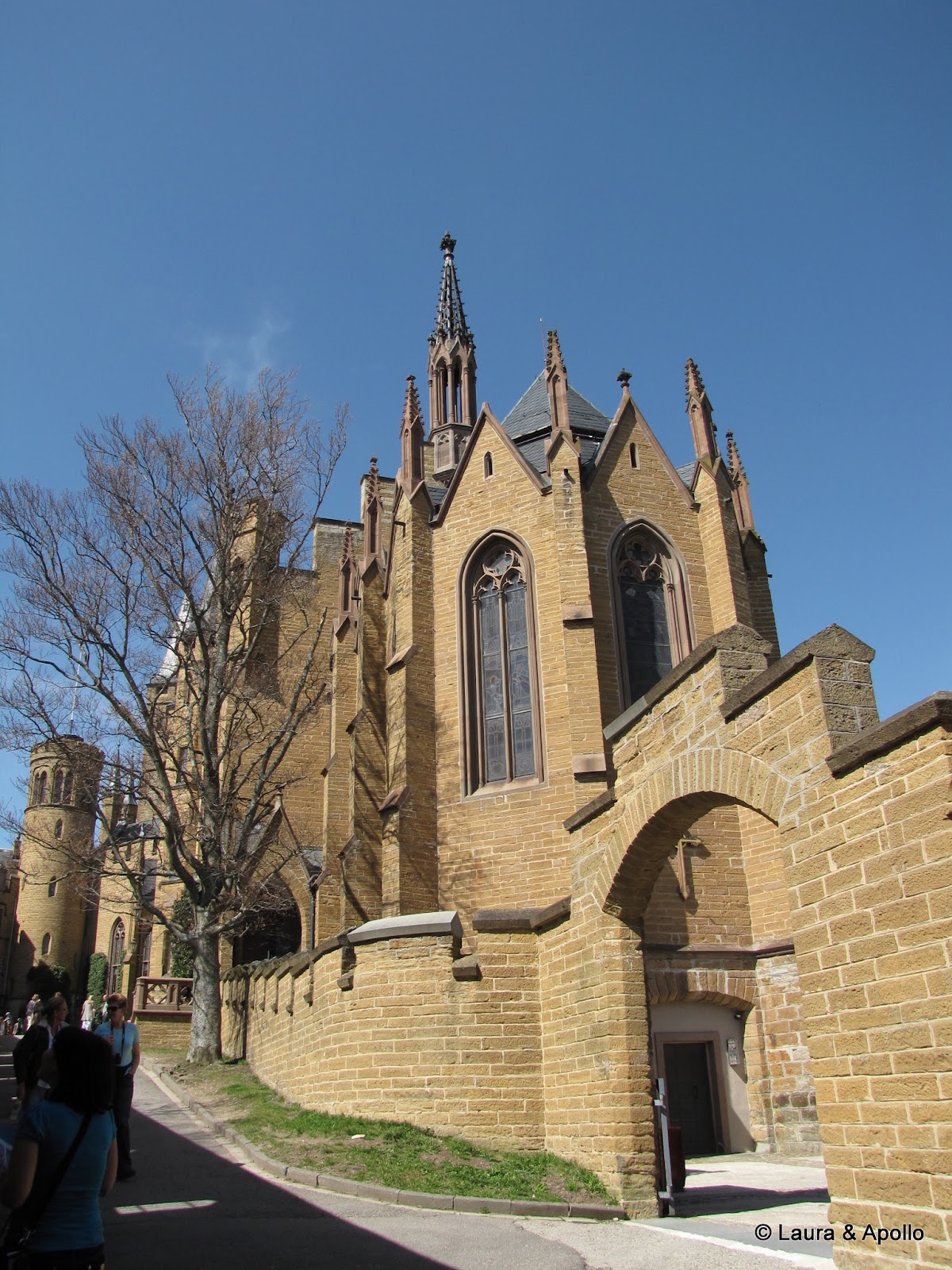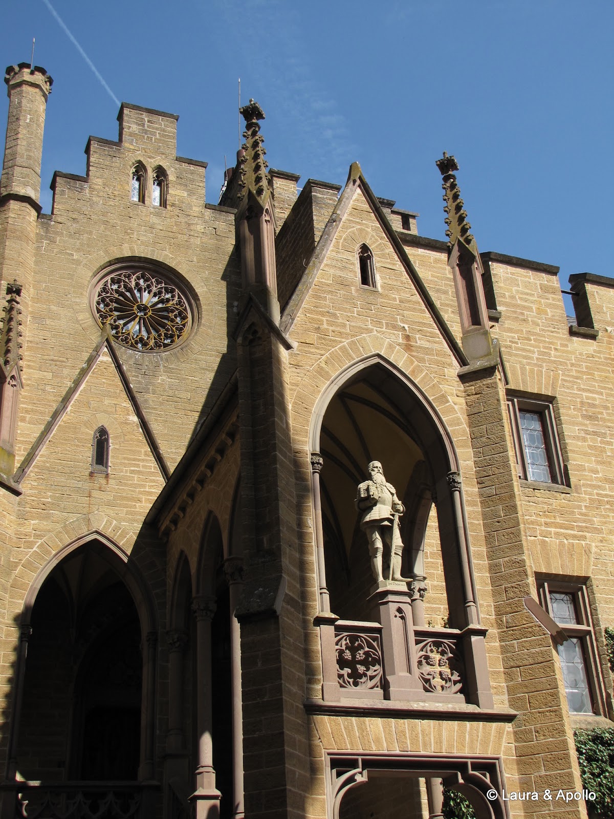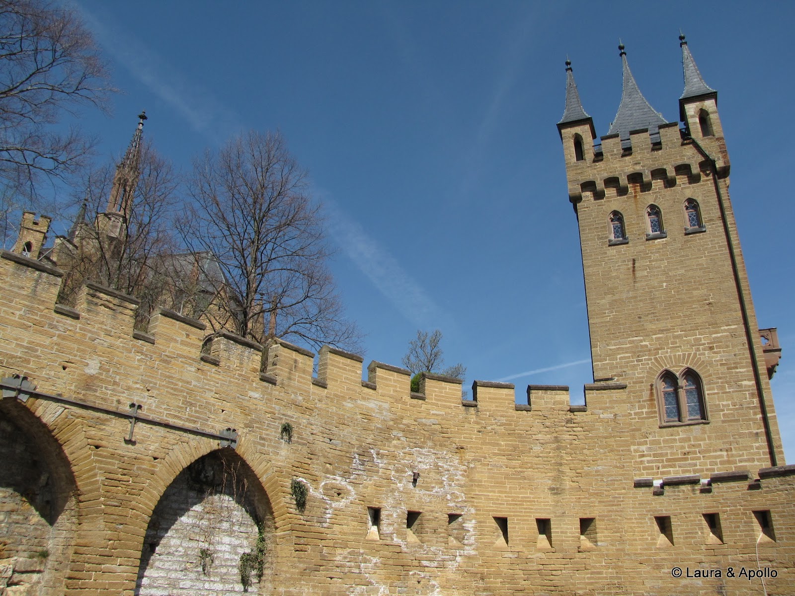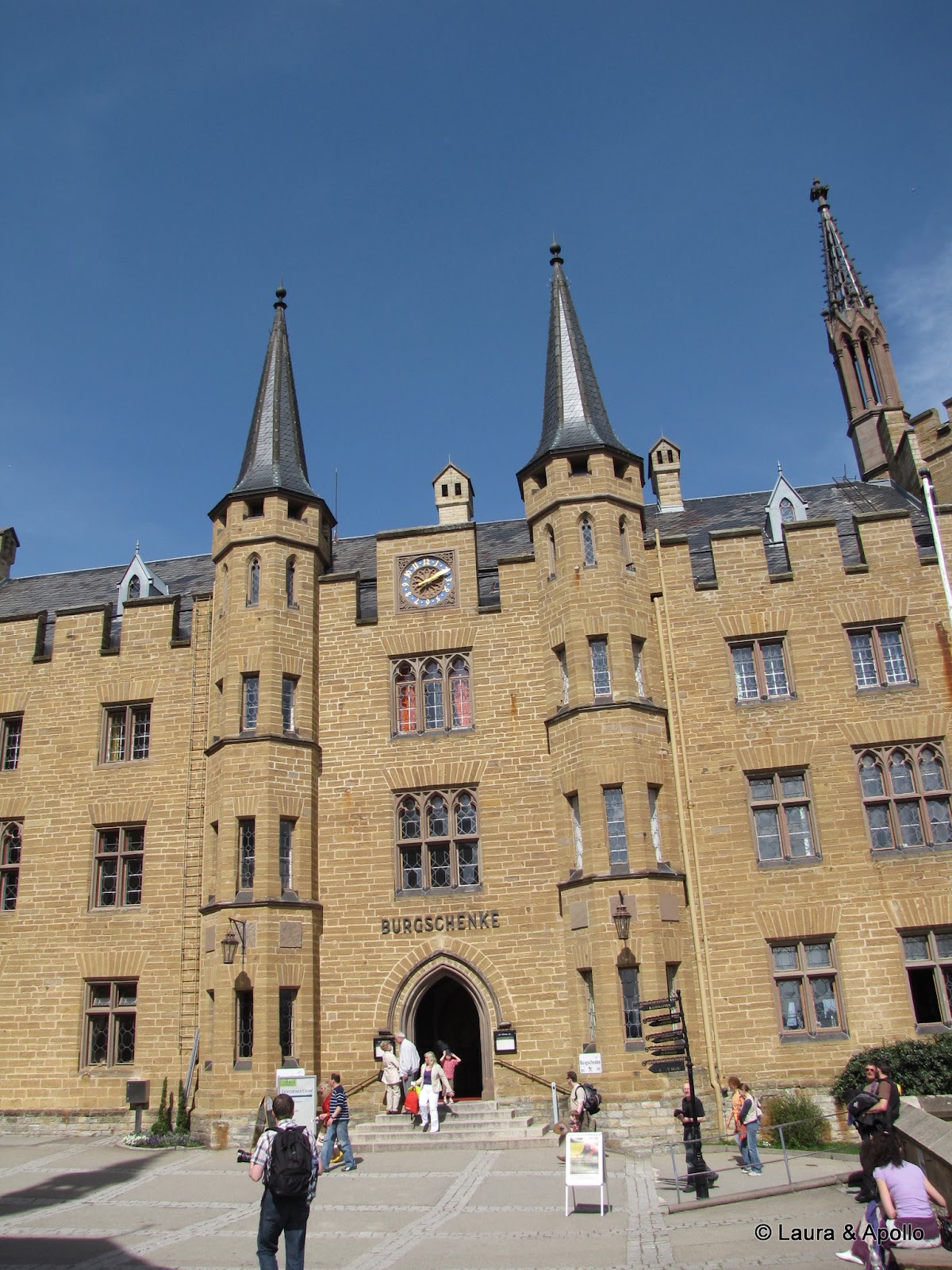 Am lasat masina in parcare si am inceput sa urcam incetisor pe aleea care conduce spre poarta castelului. Privit de la distanta, mi se pare ca seamana putin cu castelul Neuschwanstein (alt loc in care ne dorim foarte mult sa ajungem). Rampa de la intrare conduce in interiorul primei incinte fortificate, in fata unui turn impunator. Soarele si cerul albastru contrasteaza frumos cu zidurile castelului, asa ca am facut o multime de poze. Trecand prin pasajul de sub turn am ajuns in curtea interioara. In stanga se afla capela catolica Sfantul Mihail, singura parte ramasa din vechiul castel. In coltul opus al curtii se gaseste capela protestanta, care insa are la subsol o alta capela ortodoxa (aceasta insa nu se poate vizita). Pentru turul in engleza aveam de asteptat aproape 2 ore, asa ca ne-am luat inima in dinti si am intrat cu turul in germana. Castelul nu se poate vizita decat cu ghid, asa ca nu prea am avut de ales (apropo, biletul costa 10 euro), dar am avut timp sa studiem in voie toate camerele, daca tot nu intelegeam explicatiile. Totusi, ca sa nu plecam total nestiutori, am primit de la Marius si Charlotte o carte despre castel pe care am citit-o dupa ce ne-am intors acasa.