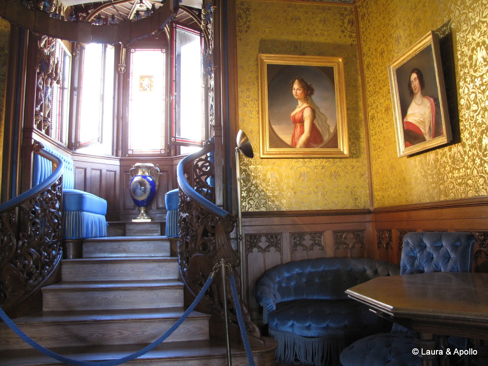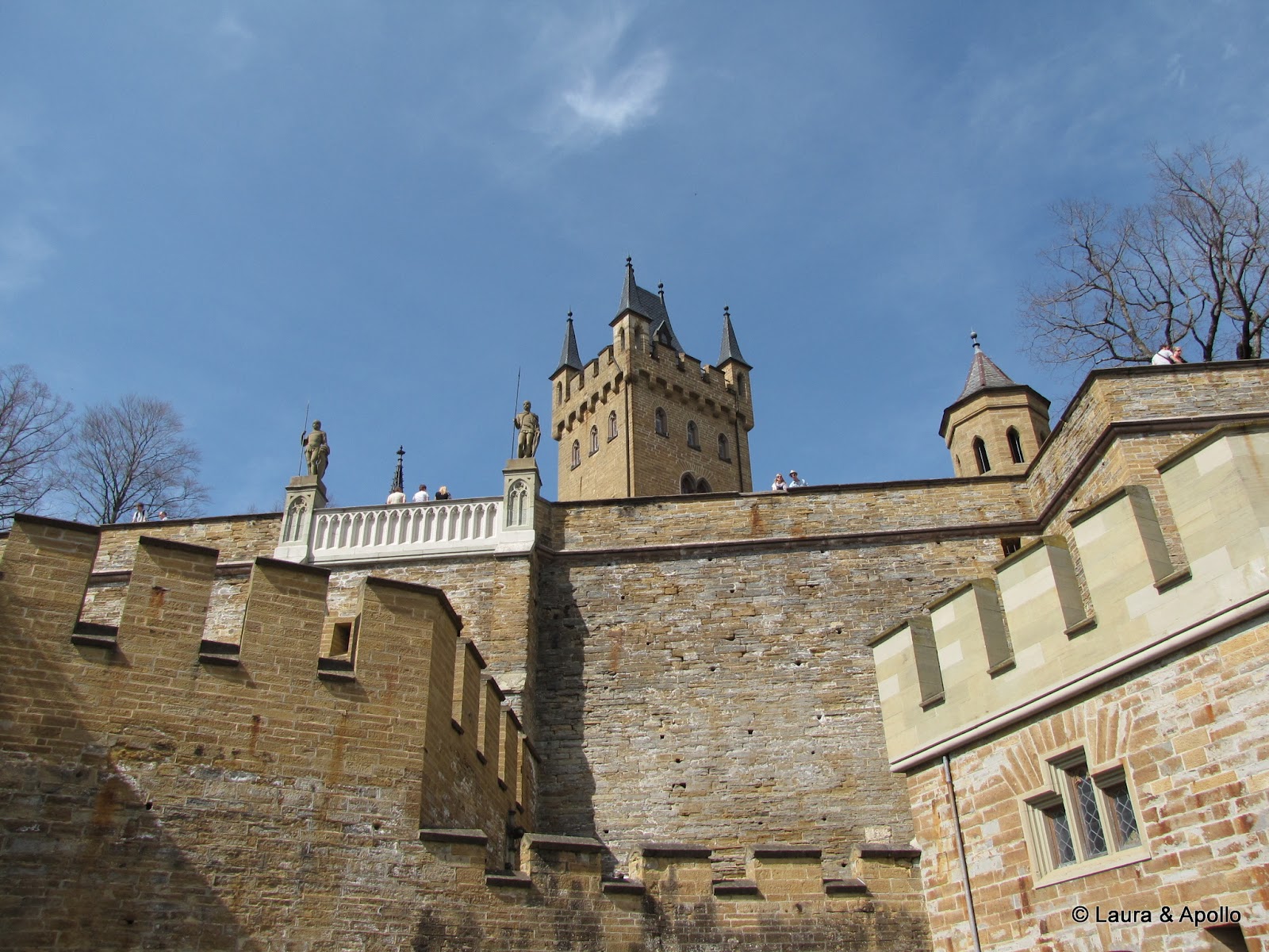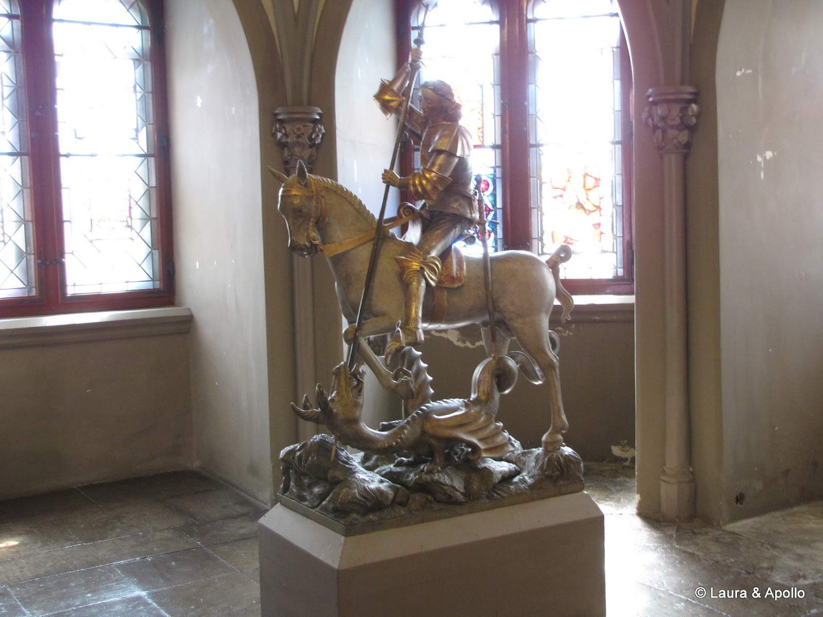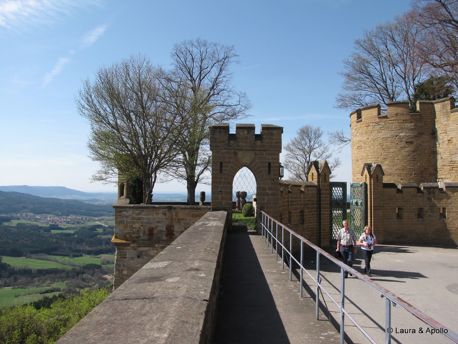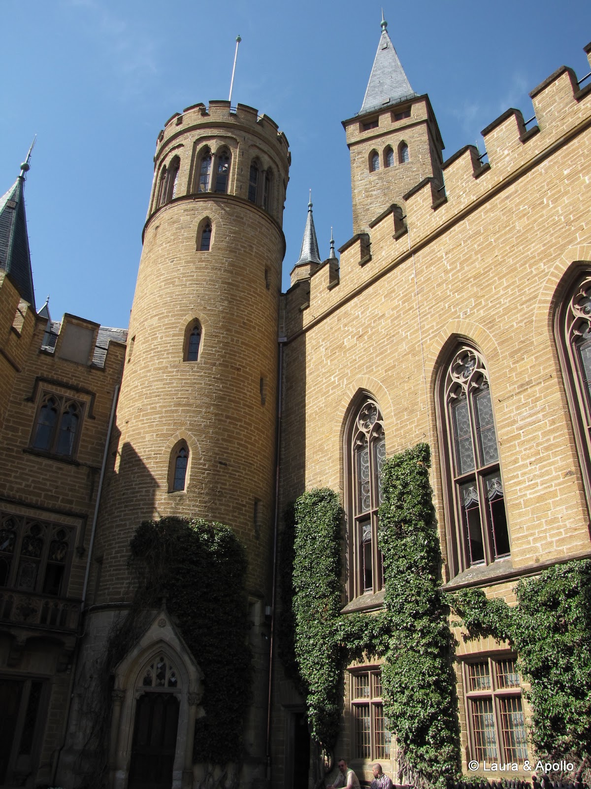 Am lasat masina in parcare si am inceput sa urcam incetisor pe aleea care conduce spre poarta castelului. Privit de la distanta, mi se pare ca seamana putin cu castelul Neuschwanstein (alt loc in care ne dorim foarte mult sa ajungem). Rampa de la intrare conduce in interiorul primei incinte fortificate, in fata unui turn impunator. Soarele si cerul albastru contrasteaza frumos cu zidurile castelului, asa ca am facut o multime de poze. Trecand prin pasajul de sub turn am ajuns in curtea interioara. In stanga se afla capela catolica Sfantul Mihail, singura parte ramasa din vechiul castel. In coltul opus al curtii se gaseste capela protestanta, care insa are la subsol o alta capela ortodoxa (aceasta insa nu se poate vizita). Pentru turul in engleza aveam de asteptat aproape 2 ore, asa ca ne-am luat inima in dinti si am intrat cu turul in germana. Castelul nu se poate vizita decat cu ghid, asa ca nu prea am avut de ales (apropo, biletul costa 10 euro), dar am avut timp sa studiem in voie toate camerele, daca tot nu intelegeam explicatiile. Totusi, ca sa nu plecam total nestiutori, am primit de la Marius si Charlotte o carte despre castel pe care am citit-o dupa ce ne-am intors acasa.
