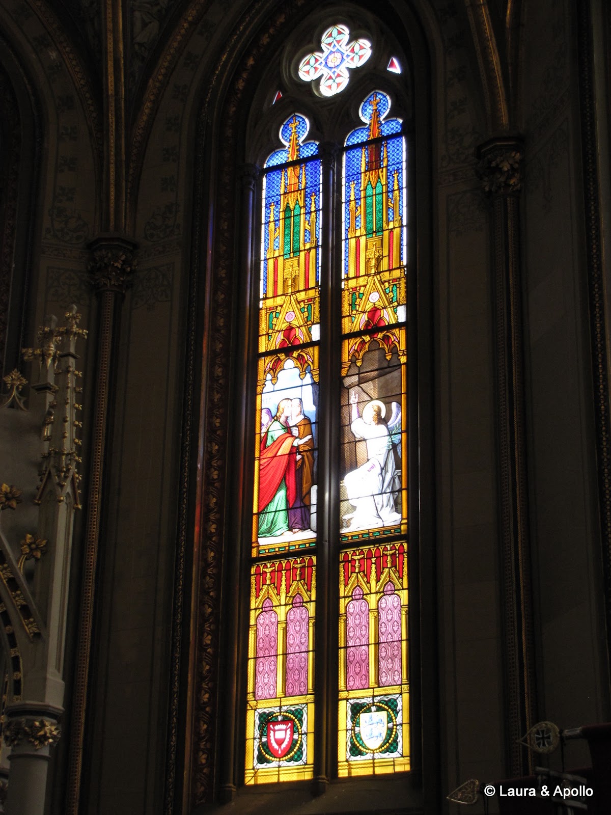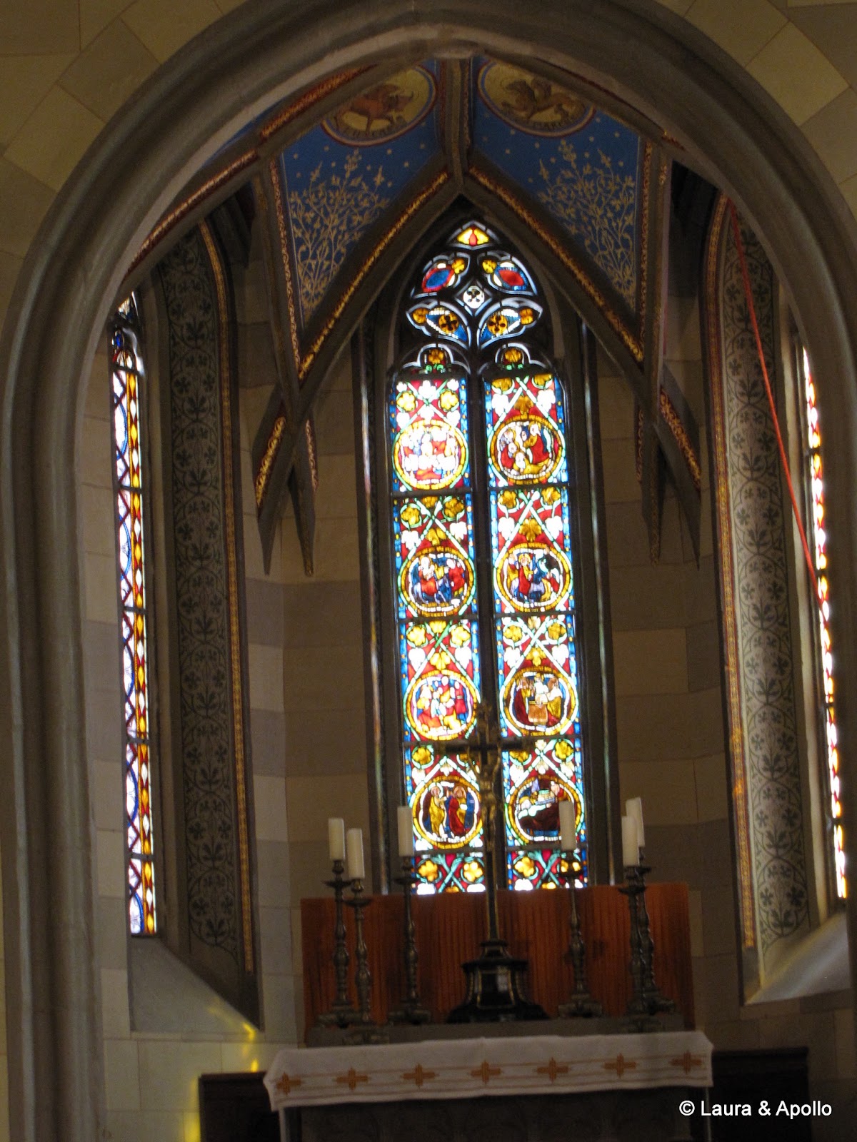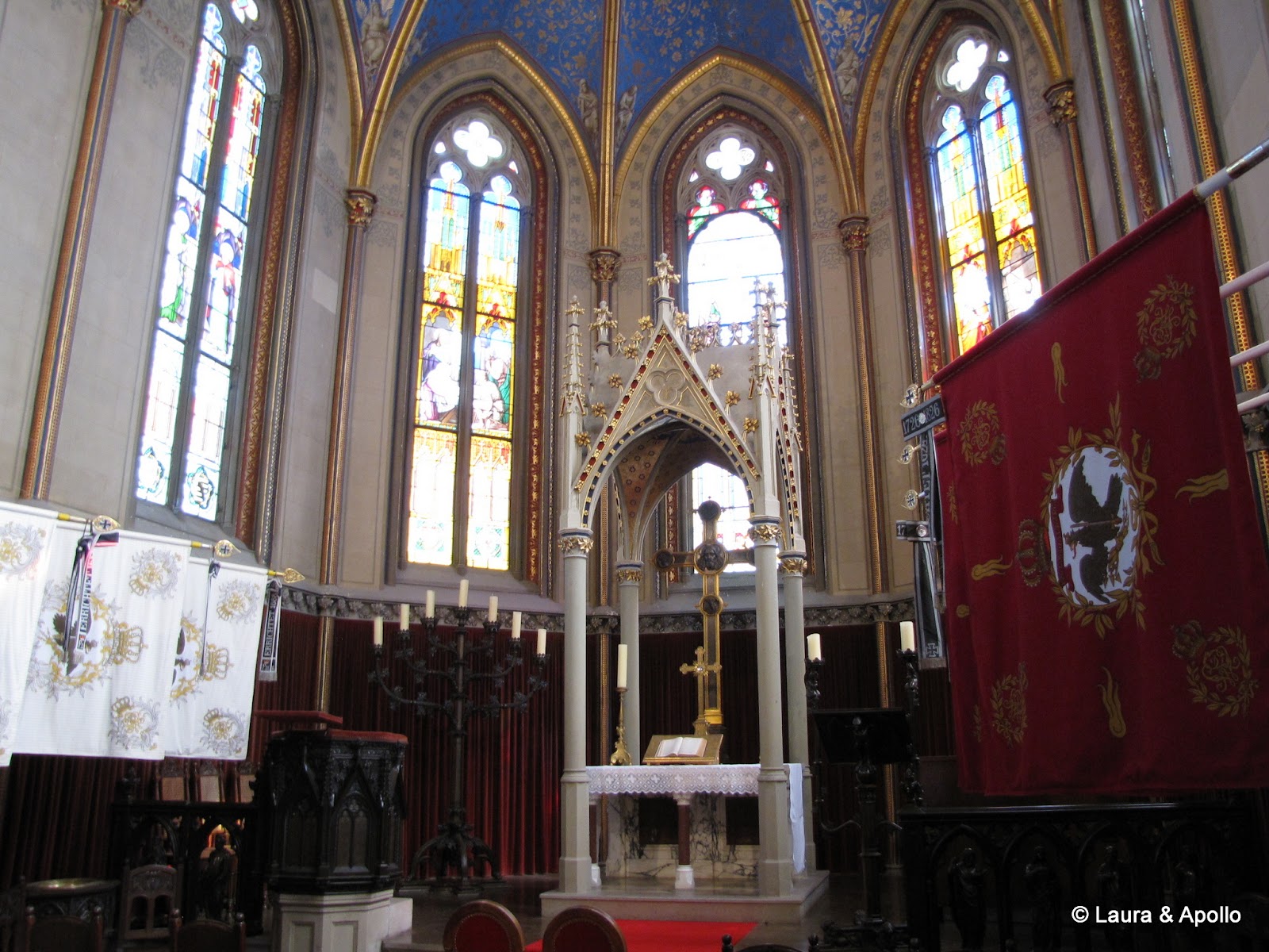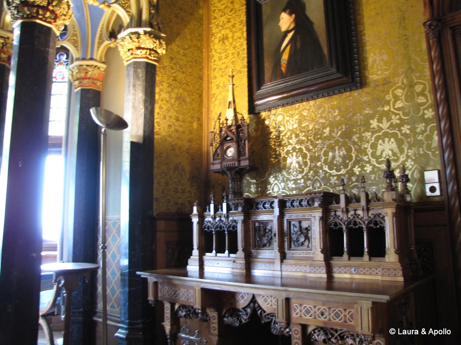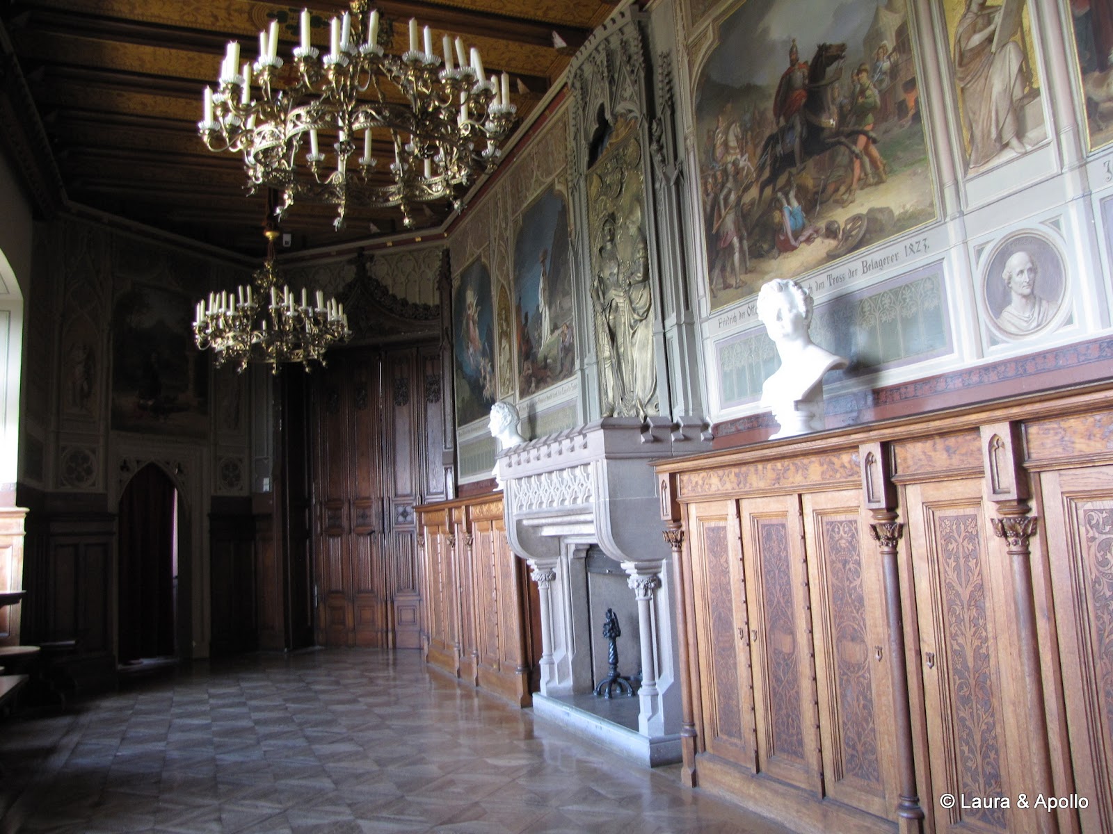 Am lasat masina in parcare si am inceput sa urcam incetisor pe aleea care conduce spre poarta castelului. Privit de la distanta, mi se pare ca seamana putin cu castelul Neuschwanstein (alt loc in care ne dorim foarte mult sa ajungem). Rampa de la intrare conduce in interiorul primei incinte fortificate, in fata unui turn impunator. Soarele si cerul albastru contrasteaza frumos cu zidurile castelului, asa ca am facut o multime de poze. Trecand prin pasajul de sub turn am ajuns in curtea interioara. In stanga se afla capela catolica Sfantul Mihail, singura parte ramasa din vechiul castel. In coltul opus al curtii se gaseste capela protestanta, care insa are la subsol o alta capela ortodoxa (aceasta insa nu se poate vizita). Pentru turul in engleza aveam de asteptat aproape 2 ore, asa ca ne-am luat inima in dinti si am intrat cu turul in germana. Castelul nu se poate vizita decat cu ghid, asa ca nu prea am avut de ales (apropo, biletul costa 10 euro), dar am avut timp sa studiem in voie toate camerele, daca tot nu intelegeam explicatiile. Totusi, ca sa nu plecam total nestiutori, am primit de la Marius si Charlotte o carte despre castel pe care am citit-o dupa ce ne-am intors acasa.