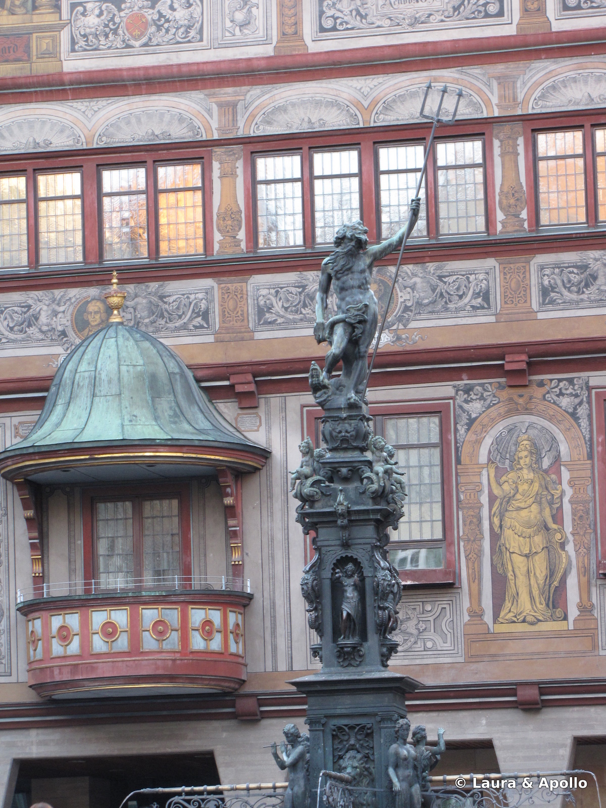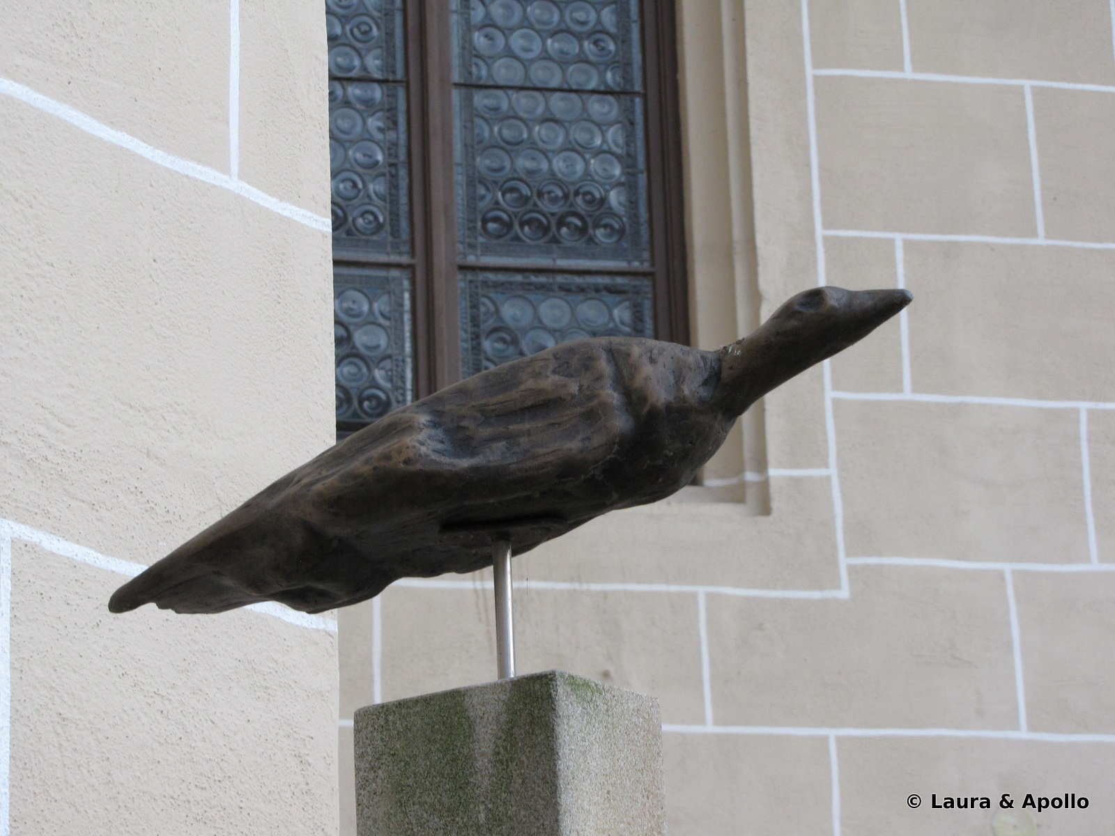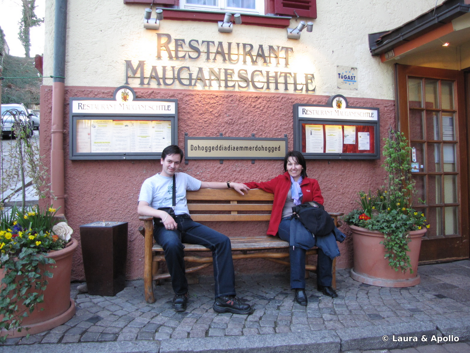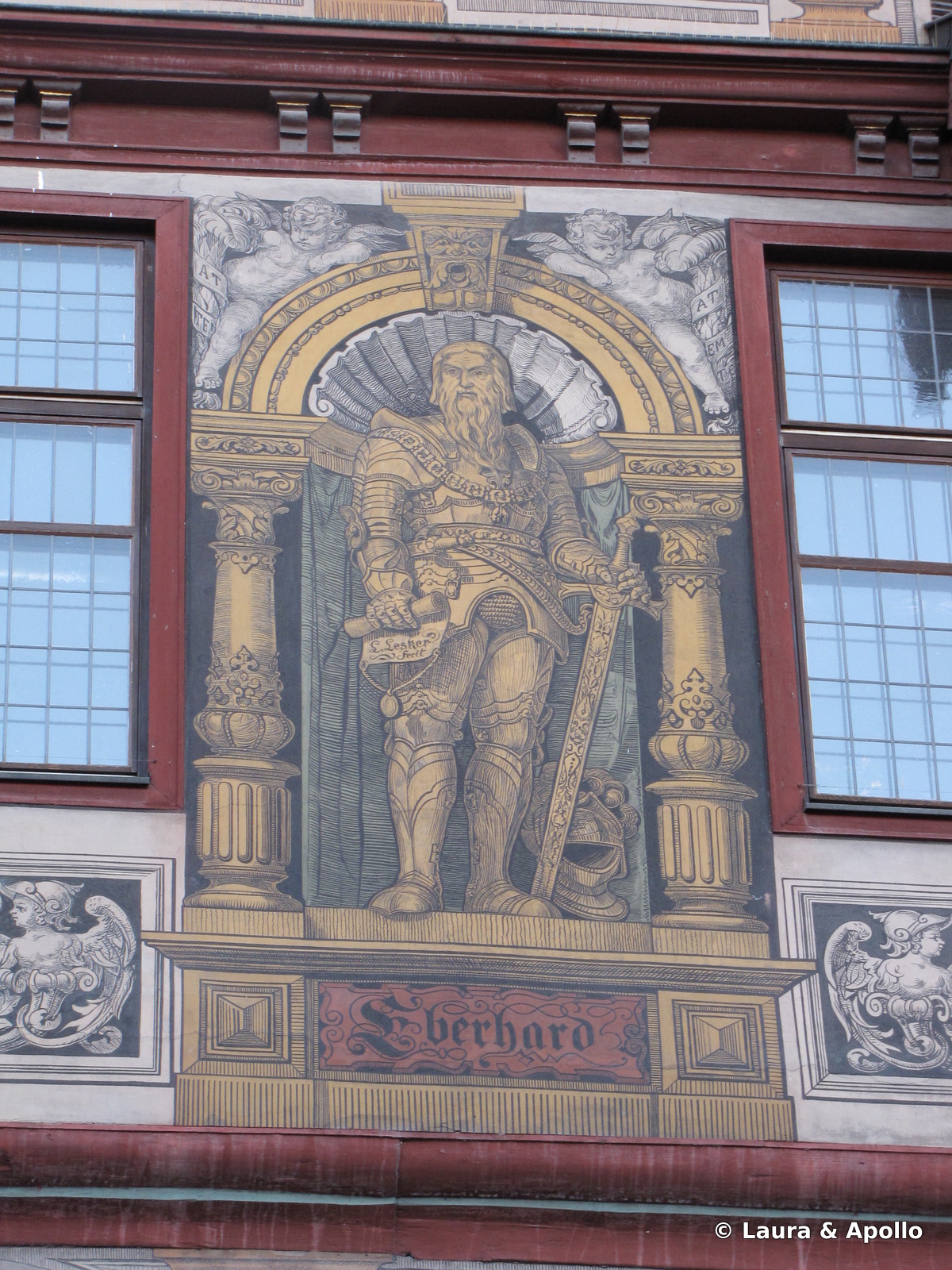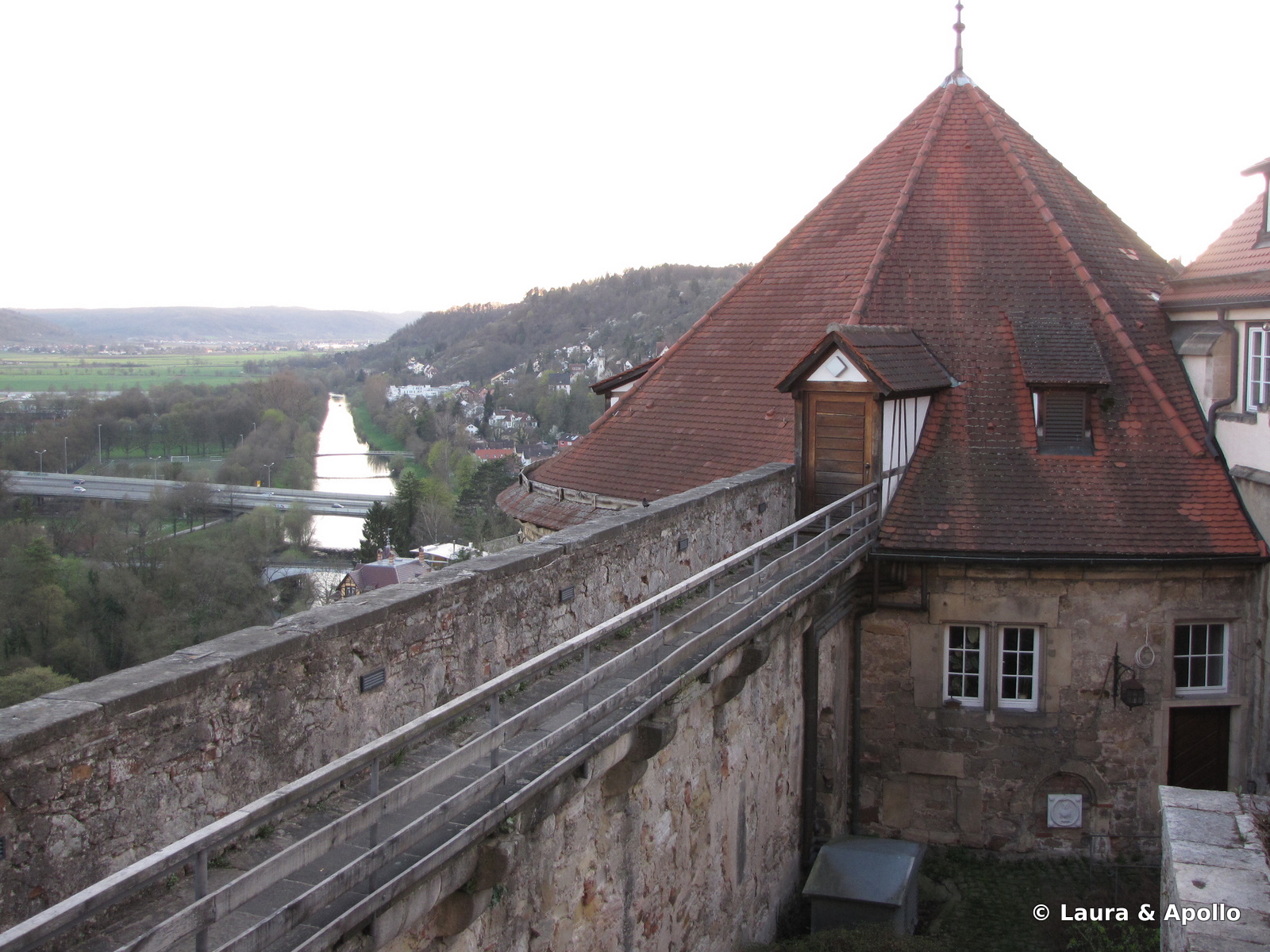Am travestat tot orasul vechi in drum spre castelul Hohentubingen, trecand si prin fata primariei, una din cele mai frumoase cladiri din oras. Pe un zid din apropiere se afla o placa memoriala care ne spune ca Goethe a trecut pe acolo (pentru foarte scurt timp, de altfel). Ca raspuns, studentii din caminul alaturat au improvizat un mesaj de raspuns, care ne informeaza ca Goethe a vomitat 10 metri mai incolo (desi intre noi fie vorba, puteam trai linistiti fara sa stim asta :-).
