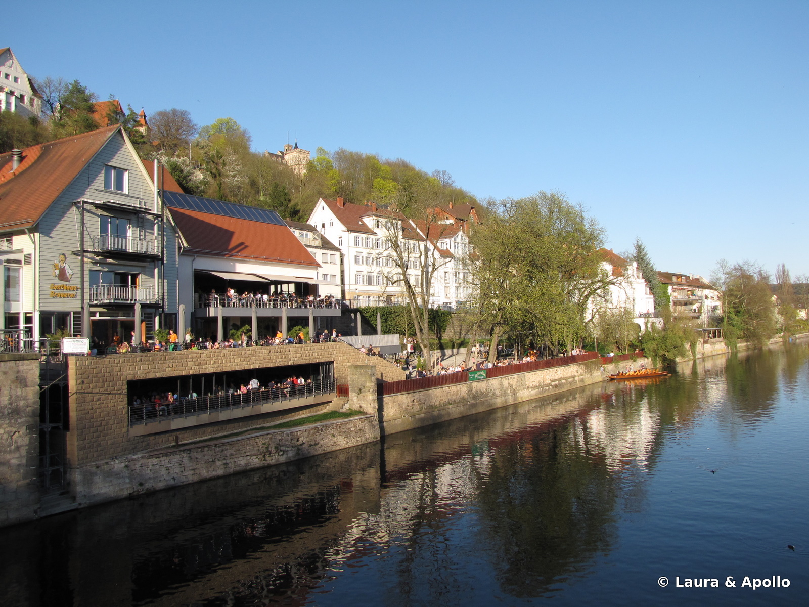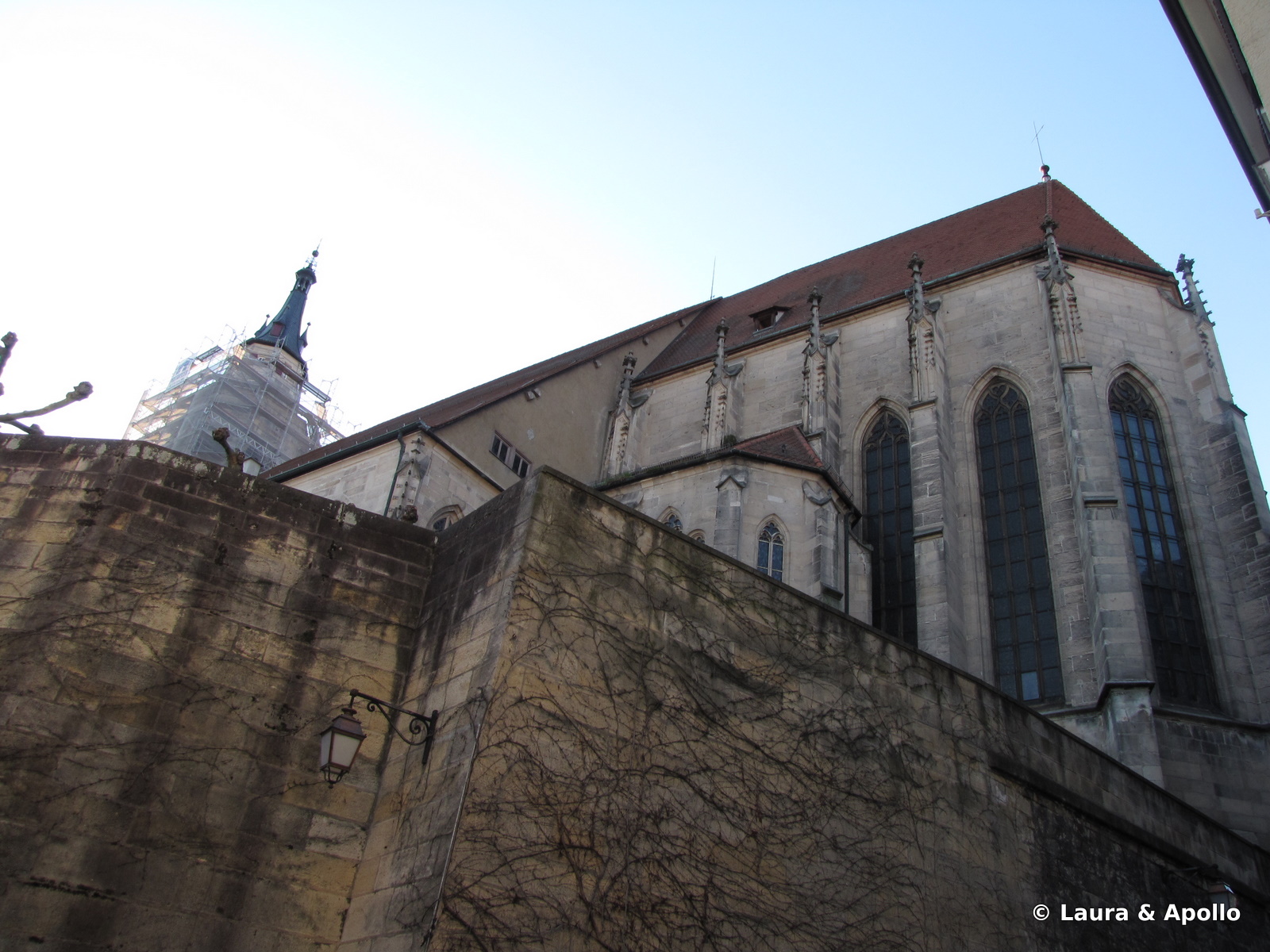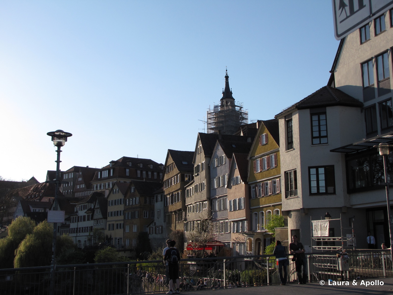 Am trecut podul peste raul Neckar, cu ochii atintiti spre zidurile orasului vechi. Pe apa pluteau cateva barci cu o forma speciala, o combinatie intre o gondola si o canoe, care se gaseste doar la Tubingen. Ca o curiozitate, o data pe an se organizeaza un concurs, in care studentii se transforma in vajnici barcagii, o reeditare a celebrei competitii intre universitatile Oxford si Cambridge. Dupa ce ne-am tratat cu o inghetata ne-am continuat plimbarea printre casele vechi, pana in fata catedralei (Stiftkirche). N-am putut s-o vizitam in voie, dar in schimb am ascultat timp de cateva minute repetitia pentru un concert de muzica clasica. La iesire am avut parte de-o scena foarte amuzanta: niste (studenti, presupun) arabi imparteau trecatorilor exemplare din Coran, promovand valorile religiei islamice. Dupa cum probabil va puteti imagina, n-aveau prea mult succes.
