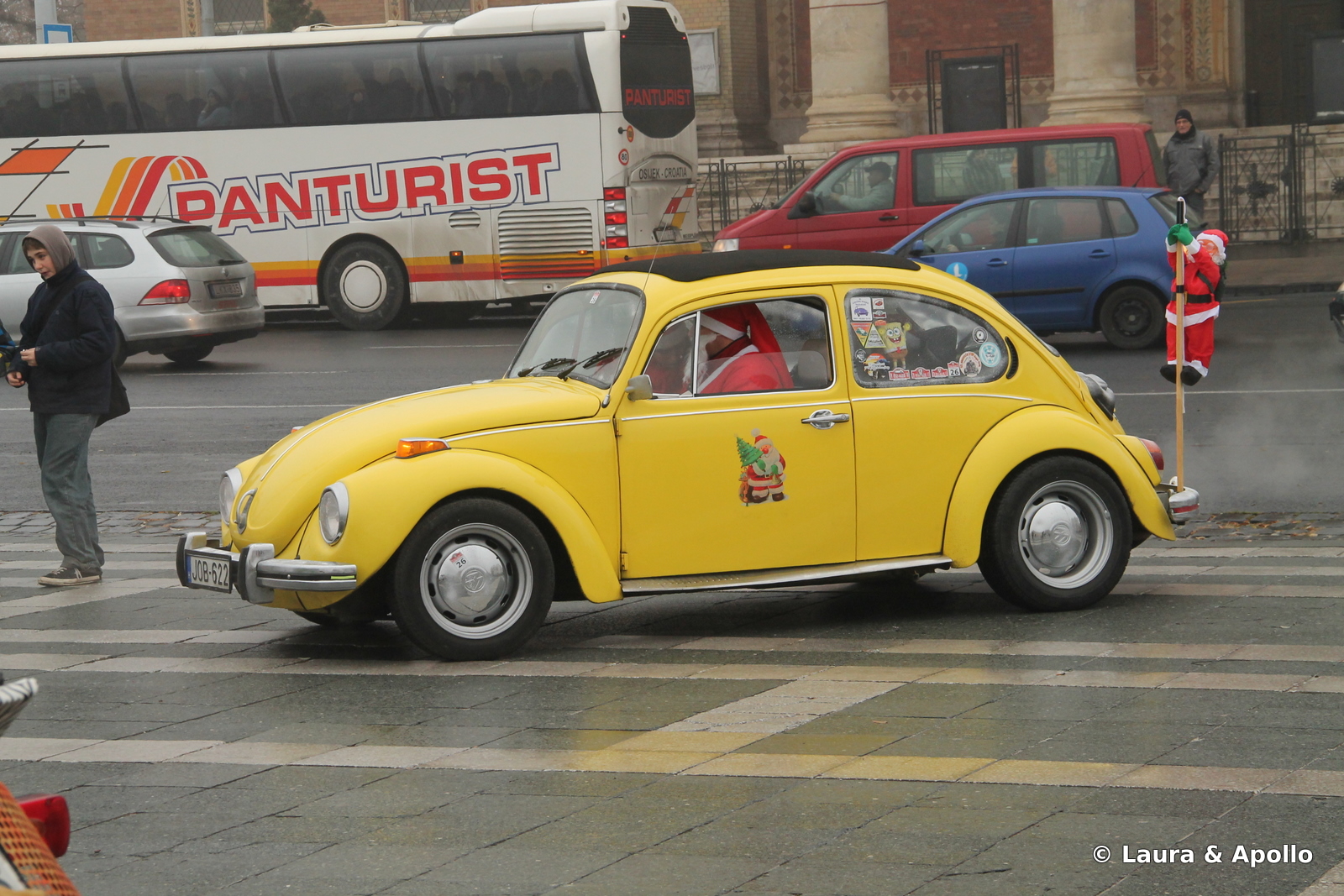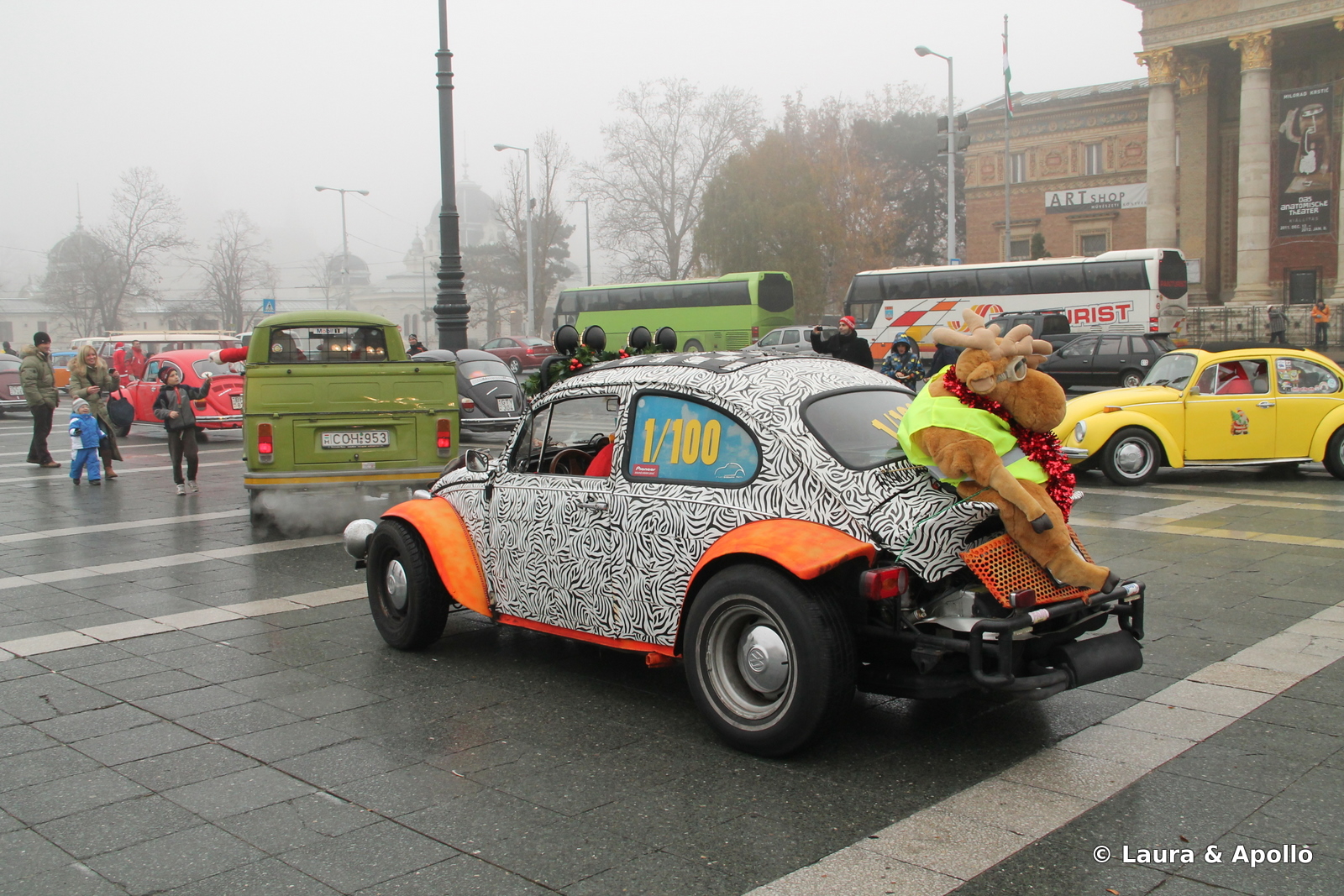 Cum ne plimbam linistiti prin Budapesta, am ajuns la Piata Eroilor, unde am dat peste o intalnire clandestina a Mos Craciunilor. Am presupus ca e clandestina pentru ca imediat ce-au dat cu ochii de noi s-au grabit sa se suie in „saniile” trase de reni-putere si sa dispara in timp record.