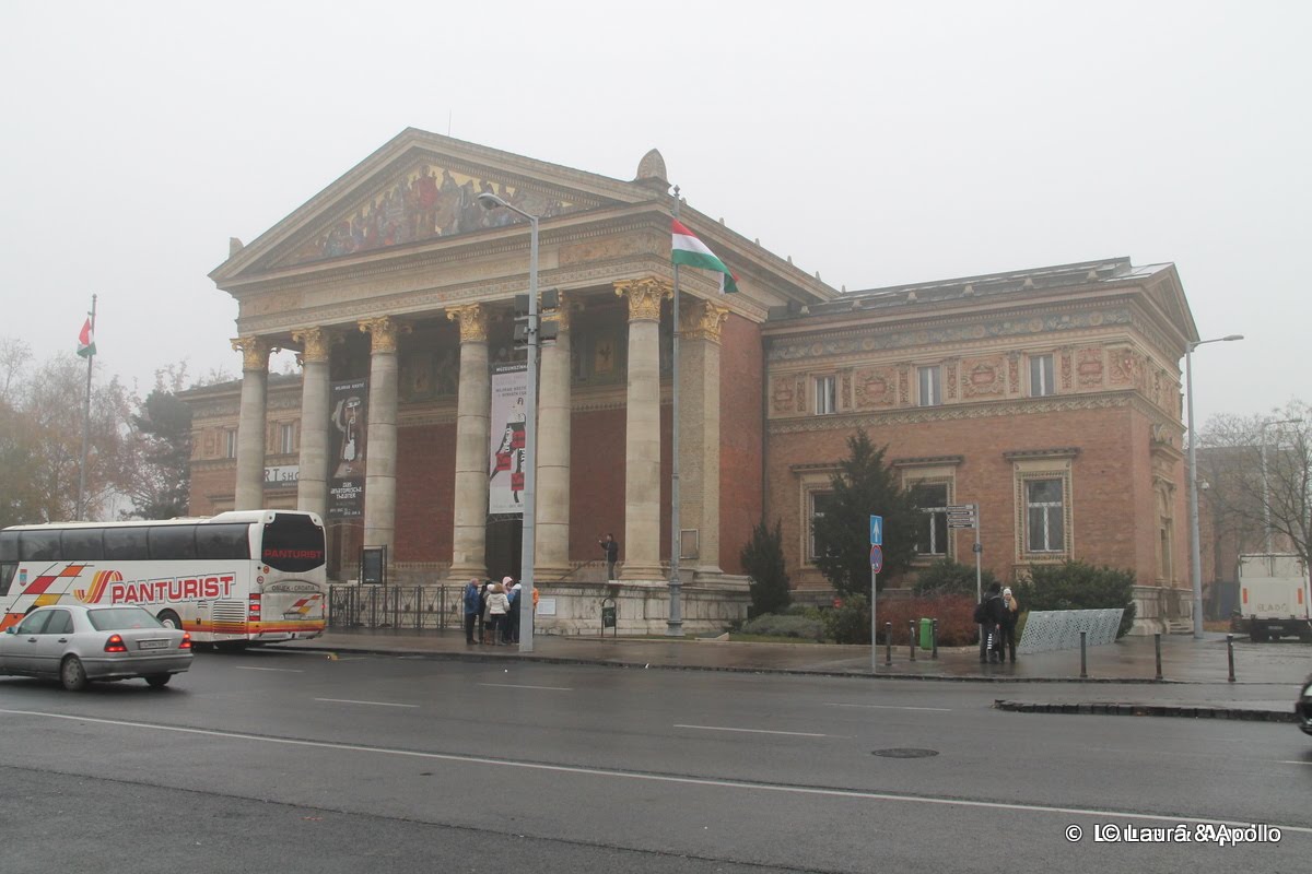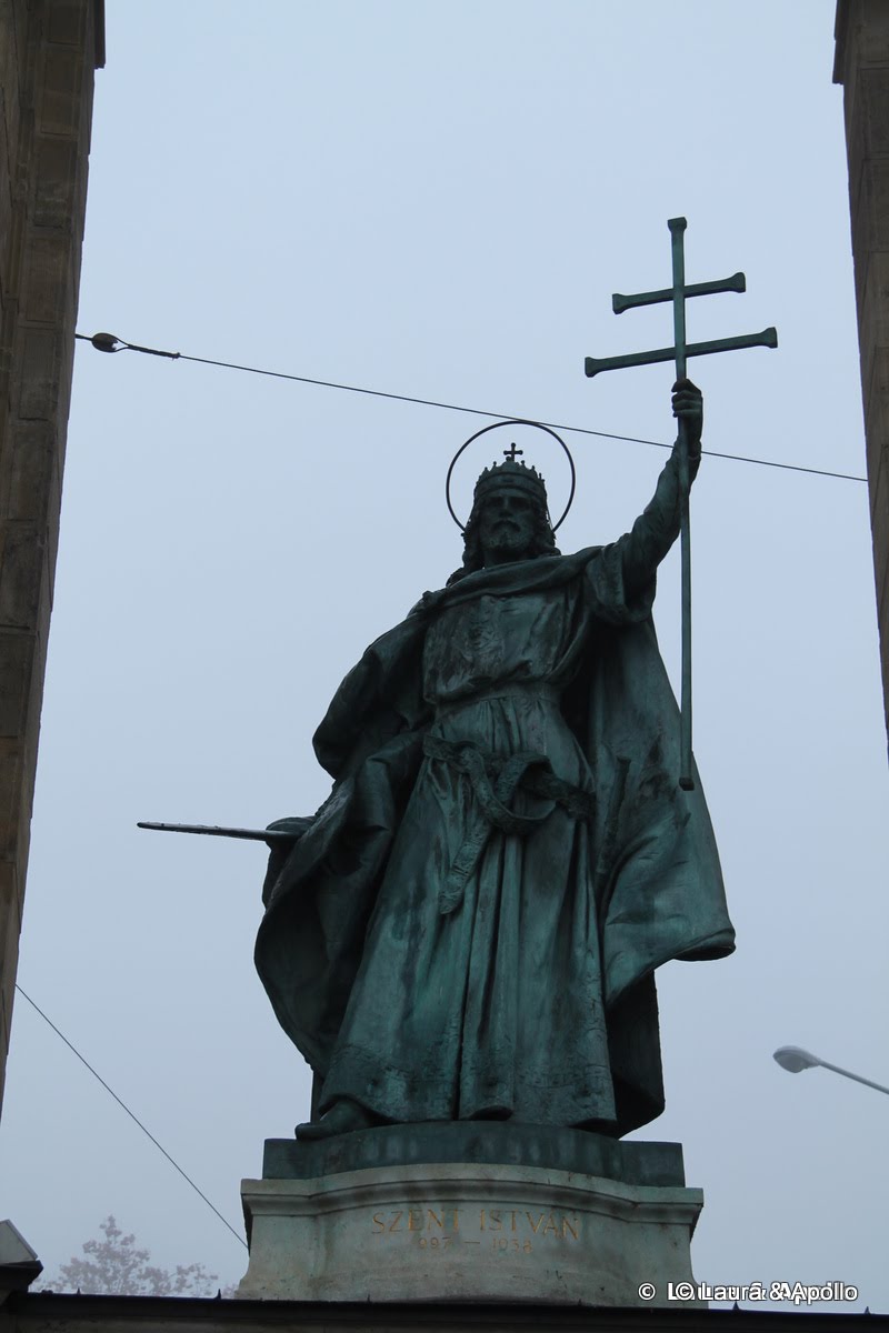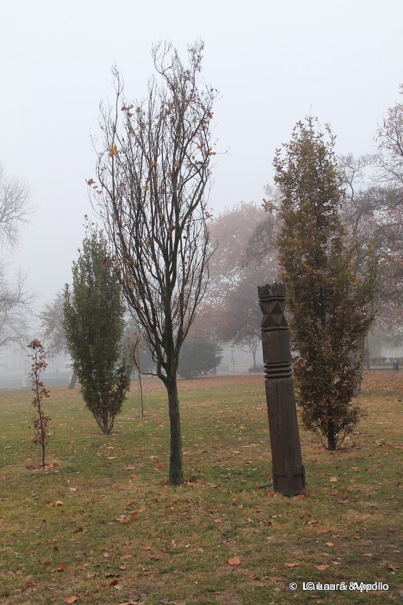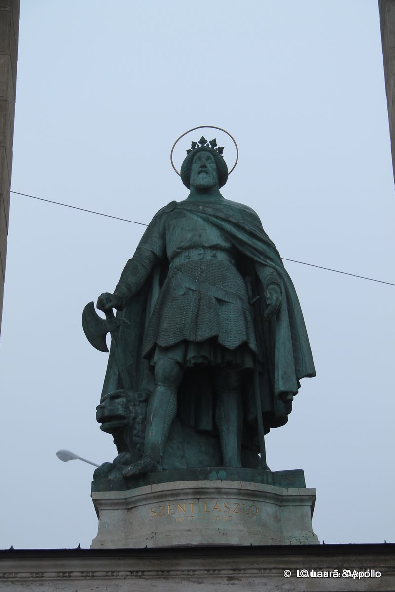 Piata Eroilor (pe limba lor Hosök tere) se afla la capatul bulevardului Andrassy, la mica distanta de parcul central. Cand am iesit din statia de metrou am dat cu ochii de monumentul Millenium, cu varful pierdut in ceata. Constructia ansamblului a inceput in 1896 (anul fondarii statului maghiar), dar a fost finalizat 4 ani mai tarziu, iar astazi face parte din patrimoniul Unesco. De o parte si de alta a pietei se afla Muzeul de arte frumoase si Palatul Artelor, amandoua invaluite in ceata. In mijlocul pietei se afla o coloana inalta, care are in varf statuia arhanghelului Gabriel, tinand in mana coroana Sfantului Stefan si crucea apostolica. In jurul coloanei se pot vedea statuile ecvestre ale celor 7 capetenii care au condus triburile maghiare in Campia Panonica. Cel din fata este Arpad, considerat fondatorul statului maghiar. Costumele lor, desi spectaculoase, nu sunt considerate „corecte” din punct de vedere istoric.