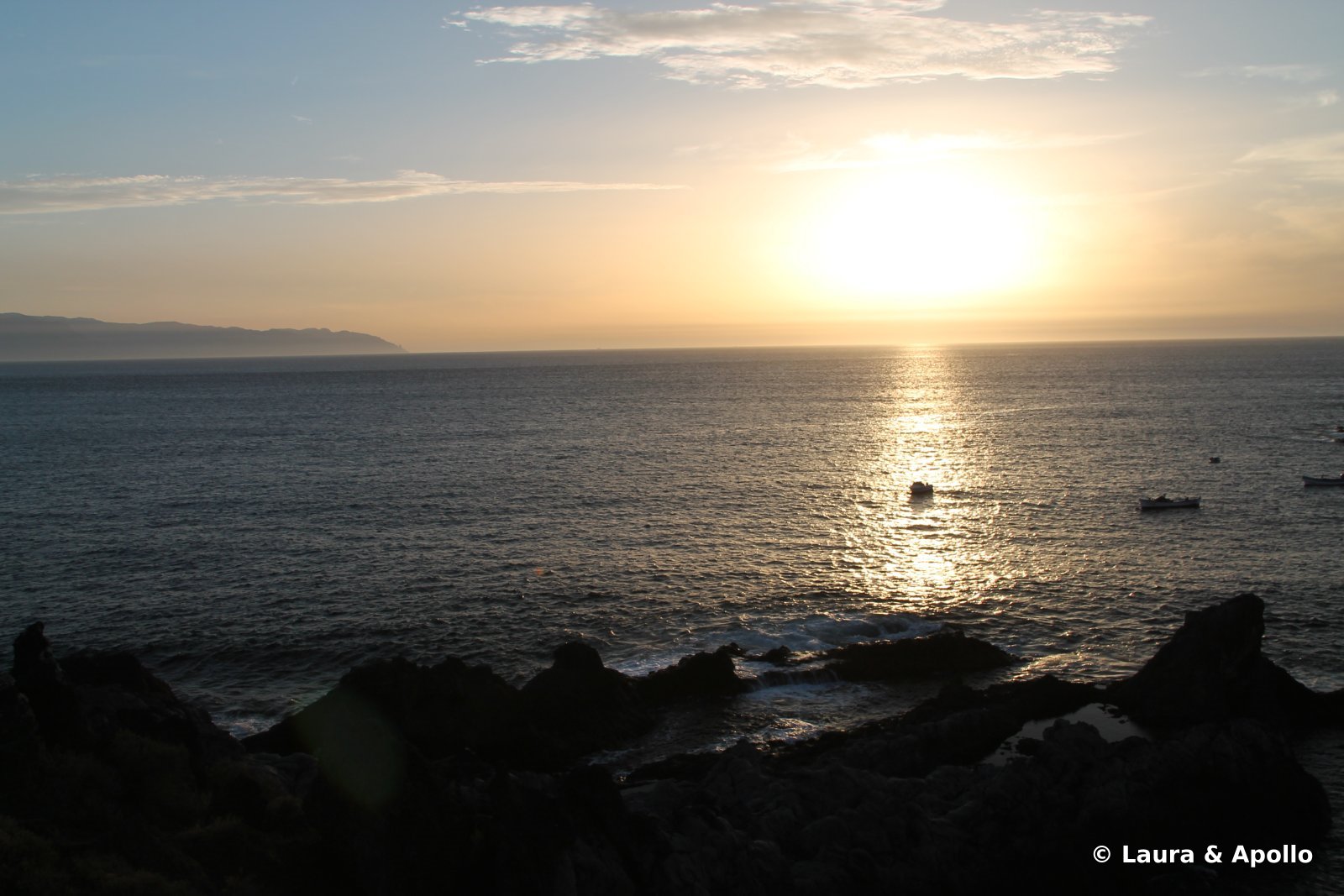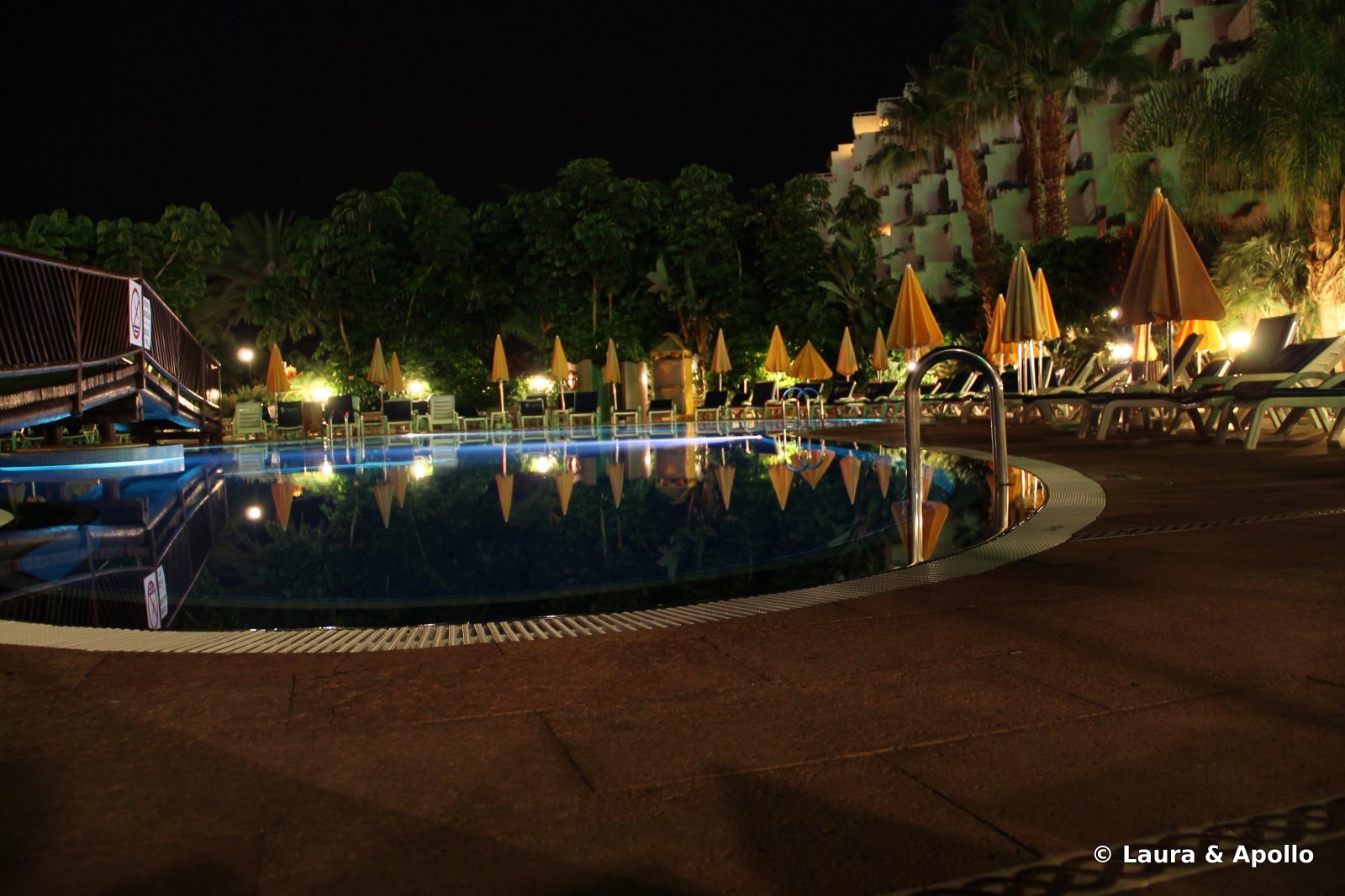 Am ajuns in bune conditii la aeroportul Tenerife Norte (trebuie spus pe o insula unde cea mai lunga distanta e de 100 de kilometri sunt 2 aeroporturi internationale), pe la 10 seara (dupa ceasul meu), ora la care soarele inca stralucea sus pe cer (ma rog, la ei nu era decat 8, dar na…). Nu la fel de norocoase au fost bagajele noastre – una din genti a ajuns fara roti (multumim Air Europa, care ne-a explicat ca poate geanta era prea incarcata, sau avea un defect din fabricatie, sau a fost fabricata intr-o zi de vineri, 13, si in ea a locuit o pisica neagra, orice, numai ei nu-s de vina). Concluzie: daca aveti de ales, evitati Air Europa. Ne-am luat masinuta inchiriata (un Seat Ibiza) de la Auto Reisen si am pornit spre hotel pe autostrada care duce spre sudul insulei, ocazie cu care am vazut si un apus superb. In mod normal am fi fost ok orice hotel decent, dar de data asta era vorba de ceva mai special, asa ca am rezervat la Playa la Arena, un hotel de 4 stele, cu o gradina tropicala si piscina incalzita 🙂 Statiunea ne-a cucerit din prima clipa cu oceanul albastru, cu cerul si mai albastru, cu plaja cu nisip negru, vulcanic, cu casele cochete agatate pe pantele muntelui si gard viu din trandafir japonez.
