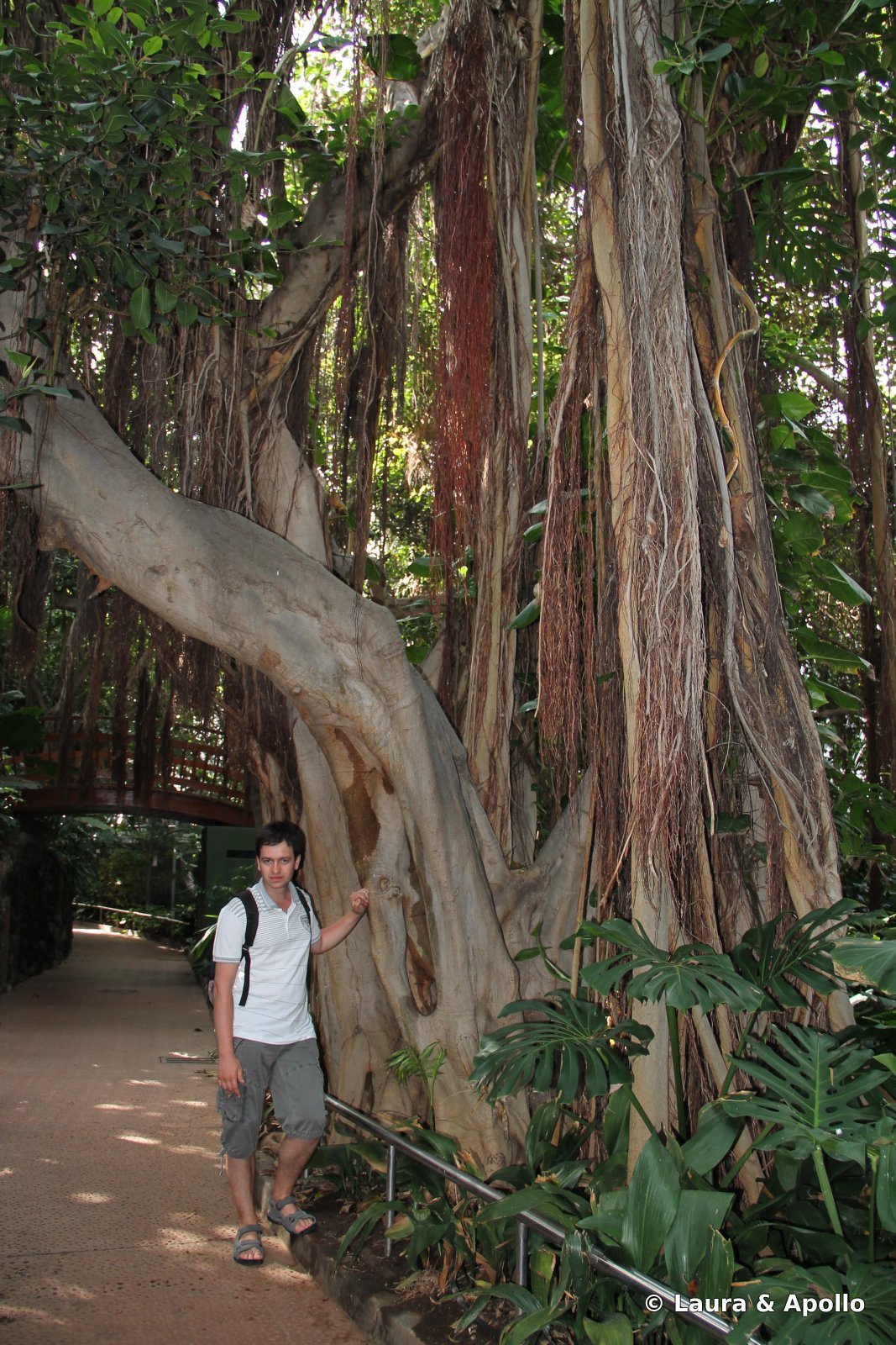 Pe drum spre hotel ne-am oprit in oraselul Icod de los Vinos, celebru pentru Drago Milenario, sau arborele-dragon, un copac specific insulelor Canare. Desi unii cred ca are peste 2000 de ani, se pare ca o varsta realista ar fi „doar” vreo 600. Specia, inrudita cu yucca, nu a evoluat deloc din epoca dinozaurilor. Arborele dragon pare un grup de trunchiuri separate, care stau apropiate inainte sa se rasfire pentru a da forma caracteristica de ciuperca. Cea mai ciudata este insa rasina sa, care devine rosie ca sangele in contact cu aerul. Drago Milenario are 17 metri inaltime si 6 metri in diametru (10 metri la baza), si este cel mai batran copac din aceasta specie. Cand spaniolii au preluat controlul insulei, copacul ajunsese deja la maturitate si domina una din cele mai mari asezari ale bastinasilor in Tenerife, care il considerau sfant. Astazi este protejat intr-o mica gradina botanica, pe care am gasit-o inchisa, spre dezamagire noastra. Am reusit totusi sa-i facem poze „peste gard”, dintr-un parc din apropiere.