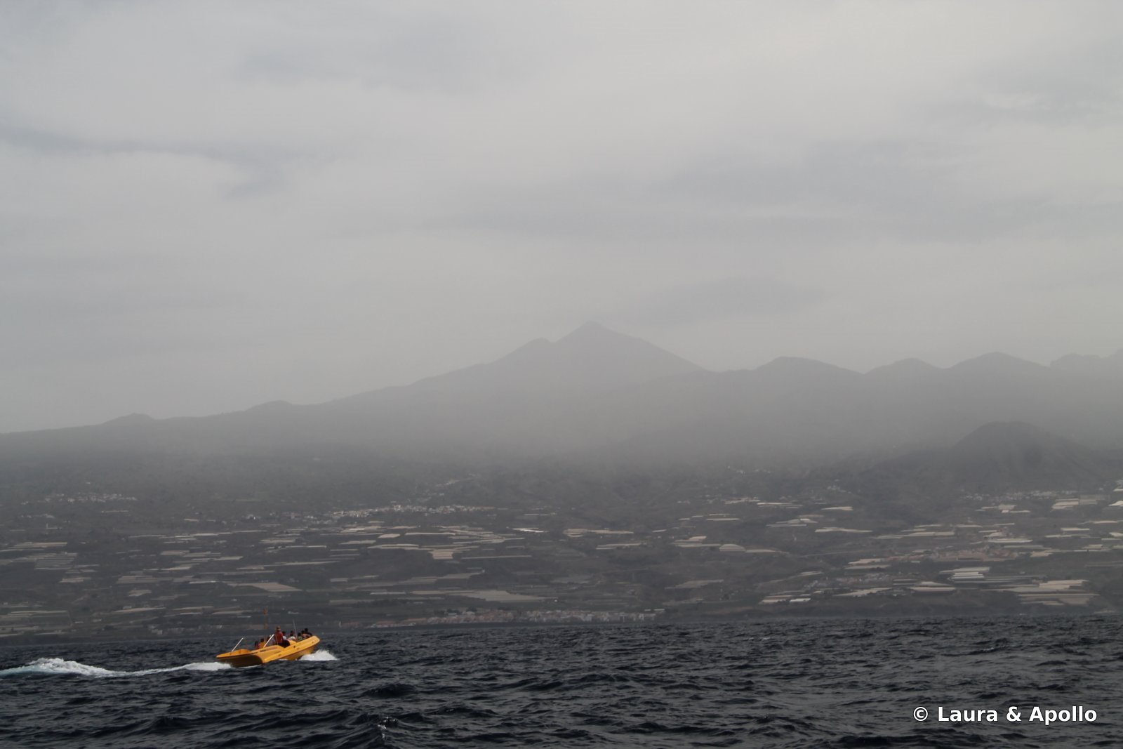 Ne-am prezentat de dimineata in portul Los Gigantes, cu vreo jumatate de ora inainte de plecare, dar n-am reusit sa gasim nici un loc de parcare, nici in port, nici in apropiere. Pana la urma, in lipsa altei solutii, am parcat ilegal intr-un colt, si am lasat cheile la organizatorii excursiei, care au promis ca se ocupa ei in caz ca apare politia (din fericire n-a aparut). Pe de alta parte am avut ceva emotii la gandul ca asigurarea nu acopera situatia in care oamenii aia dispar cu masina.