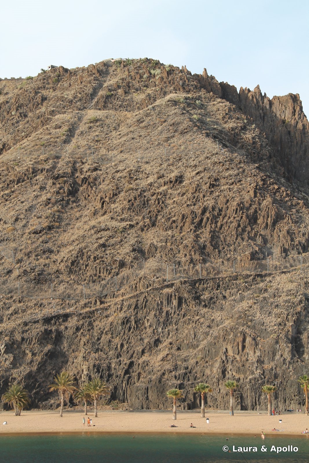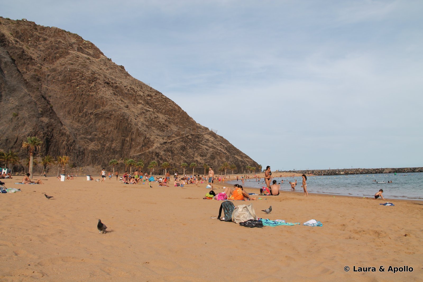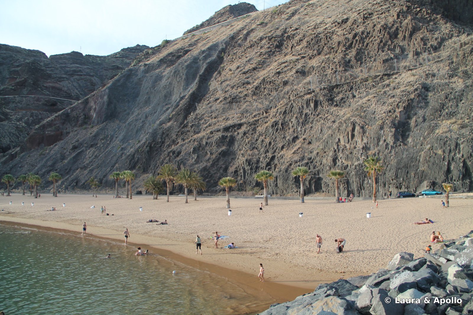 Dupa ce am petrecut cateva ore placute in La Laguna, am pornit spre Santa Cruz. Pana acum cativa ani, capitala nu avea o plaja, cea mai mare parte a tarmului fiind ocupata de port. Autoritatile s-au gandit ca nu-i frumos sa se bucure doar turistii de soare si mare, asa ca au adus cateva vapoare cu nisip fin si auriu din Sahara, si au amenajat in nordul orasului, la picioarele stancilor, o plaja lunga si frumoasa, marginita de palmieri, botezata Las Teresitas. N-am mai stat niciodata pe plaja la umbra palmierilor, asa ca a fost o experienta foarte placuta, chiar daca apa era putin cam rece. In caz ca vreti sa faceti poze frumoase, momentul cel mai potrivit este dimineata (noi am nimerit seara, asa ca nu prea avem cu ce sa ne laudam, dar speram sa ne credeti pe cuvant: e o plaja minunata).