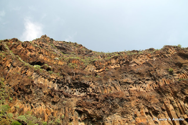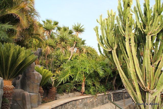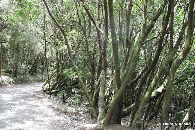 Dupa ce am terminat de mancat, ne-am indreptat spre Parcul National Garajonay, inclus in patrimoniul Unesco. In timp ce soarele parjoleste tarmul sudic, pe muntele Garajonay predomina un climat umed si racoros. Ierburile salbatice, ferigile si lichenii cresc din abundenta, formand un covor gros peste bolovani. Pe pantele stancoase rezista ultimele paduri de dafin, un arbore specific insulelor Canare (din pacate o parte din ei au ars in incendiul din aceasta vara). Printre crengile zvelte si arcuite ale dafinilor am mai intalnit si smochini, care cresc aici in numar mare, alaturi de cateva sute de specii de flori.