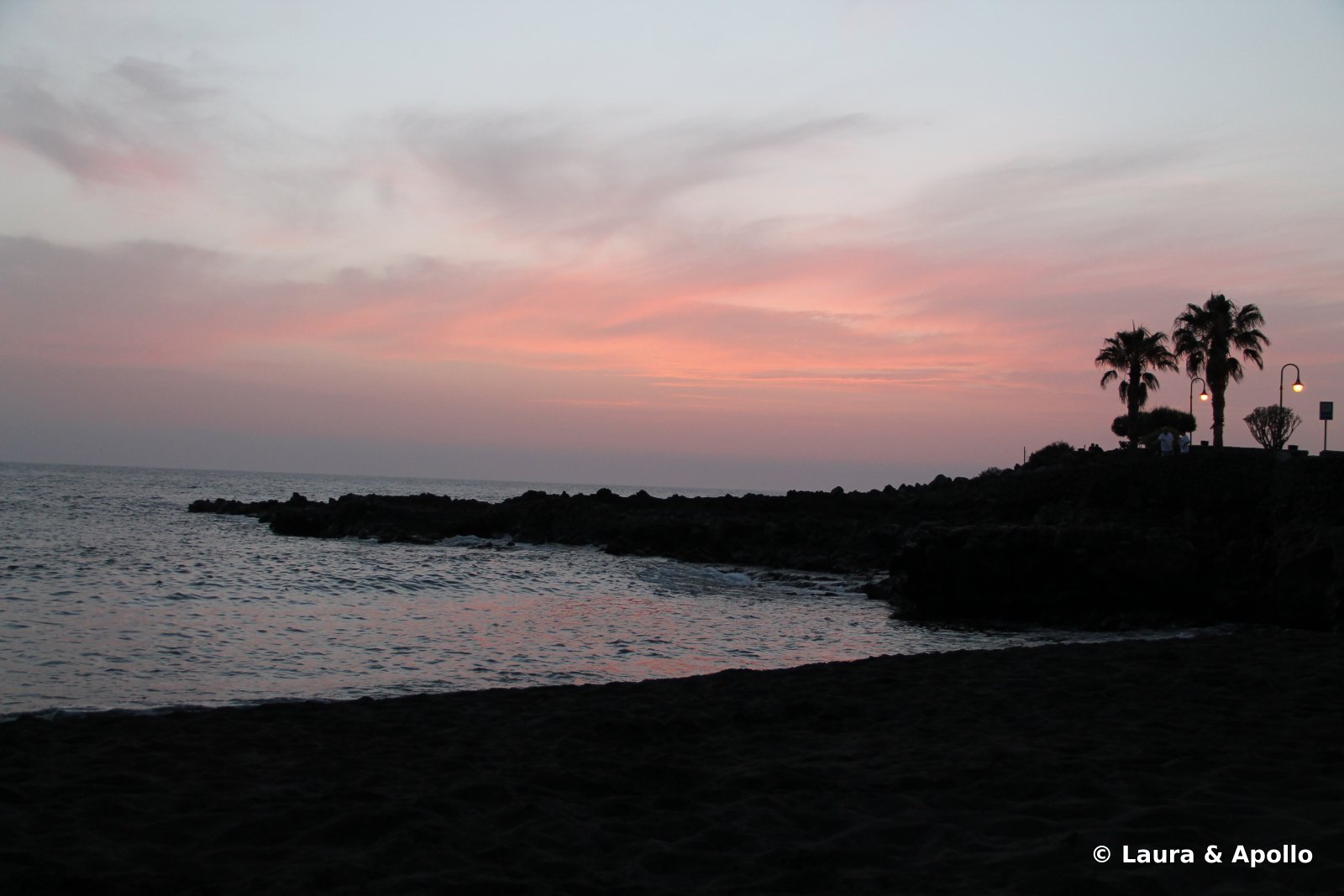 Drumul cu vaporul inapoi spre insula noastra l-am petrecut tot in compania noilor nostri prieteni. Un autocar ne-a dus inapoi la hotel, unde am profitat de timpul ramas pentru o baie in piscina. Ne-am indreptat apoi spre o micuta plaja cu nisip negru, unde am privit apusul soarelui in ocean, in ultima noastra seara in Tenerife.