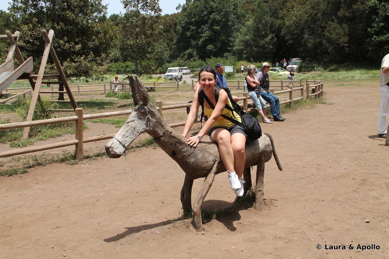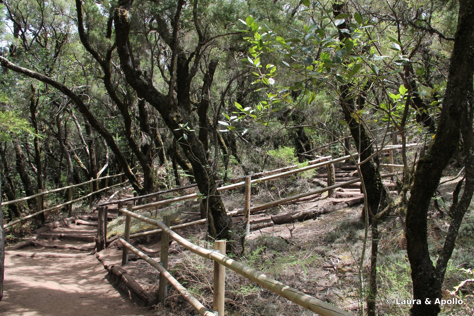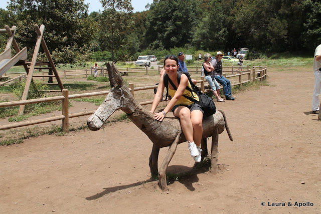 Chiar la intrare sunt doua statui din lemn, care amintesc de o poveste tragica, asemanatoare cu cea a lui Romeo si a Julietei. Gara era o printesa din La Gomera, iar Jonay – un print din Tenerife. Cei doi s-au intalnit la o sarbatoare si s-au indragostit. Cand si-au anuntat casatoria, vulcanul Teide de pe insula alaturata a inceput sa arunce lava, iar eruptia a fost intrepretata de familiile lor ca un semn rau (bastinasii guanches credeau ca acolo locuieste zeul infernului), si i-au obligat sa se desparta. Cei doi tineri s-au refugiat pe cel mai inalt varf de pe insula, si, incoltiti de urmaritori, si-au luat viata. Ghidul ne-a lasat sa exploram padurea in voie, timp de vreo 30 de minute (sincer sa fiu speram la ceva mai mult). Ne-am plimbat pe potecile amenajate, printre dafinii inalti, acoperiti de muschi. N-am luat nici o frunzulita cu noi, am fost avertizati ca unele specii sunt otravitoare. Laura m-a grabit spre masina, cu gandul sa nu plece fara noi. Am ajuns (oarecum) la timp dar… lipseau inca doua persoane. I-am asteptat ce i-am asteptat, apoi ghidul a plecat sa-i caute, si i-a gasit in sfarsit, rataciti in padure, dupa inca vreo jumatate de ora (pacat ca am petrecut-o in masina si nu in parc).