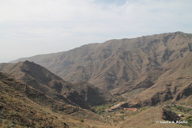 Programul excursiei era alcatuit in asa fel incat vizitarea capitalei sa ramana la final. Ne-am urcat din nou in masina si am pornit pe drumurile inguste care serpuiesc pe coastele muntelui. Turismul a produs ceva transformari in La Gomera, un semn destul de evident fiind tunelurile care au inlocuit portiunile foarte inguste ale soselei, pe unde nu puteau trece autobuzele. Am facut o scurta oprire ca sa vedem vaile adanci care brazdeaza insula, si chiar un lac de acumulare inghesuit intr-o vale. Lucrul e cu atat mai ciudat cu cat pe toata insula nu exista nici un curs de apa permanent. Sursa principala din apa este umezeala din aer, care condenseaza noaptea pe pantele muntelui.