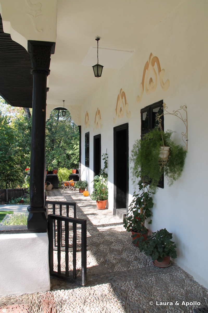 O alee cu pietris ne-a condus pana in fata conacului, o cladire frumoasa de la inceputul secolului 19, construita in stil romanesc vechi. Zidurile albe sunt in contrast cu veranda alcatuita din lemn negru si plina de flori. Cladirea pe care o vedem astazi facea parte dintr-un complex mai mare, care includea o biserica, un conac mai mare si cateva anexe, insa acestea au fost afectate de cutremure si nu au mai putut fi salvate. La conacul Bellu nu se mai organizeaza degustari de vinuri, in schimb se poate vizita crama baronului, „decorata” cu butoaie de cateva tone, astazi goale. Cea mai mare (si placuta) surpriza este insa interiorul conacului, restaurat cu grija in urma cu cativa ani. In Romania sunt putin castele sau conace mobilate, cele care pastreaza mobila originala se pot numara pe degete, iar conacul Bellu este unul dintre ele. In camerele decorate cu gust isi dau intalnire orientul si occidentul, iar marea majoritate a pieselor expuse apartinand baronului Bellu, cunoscut colectionar de arta si antichitati.