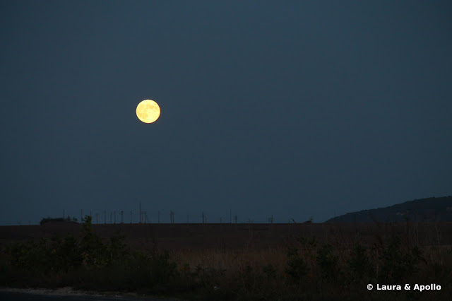 De la treptele care urca pana la calaret se ramifica poteci care conduc spre alte locuri interesante. Un indicator ne indreapta spre pesteri. O parte din ele au fost sanctuare ale tracilor, iar altele au servit ca adapost pustnicilor. Pestera cea mare (care nu este chiar o pestera, pentru ca partea de sus lipseste – nu m-am lamurit daca s-a prabusit, sau n-a existat niciodata) era sanctuarul nimfelor. Undeva sus, pe un colt de stanca, se vad ruinele unei cetati. Bineinteles ca n-am putut rezista, asa ca ne-am intors la calaret, si am urmat indicatorul spre cetate, care, spre deosebire de celelalte, nu dadea si timpul pana la destinatie. Drumul e la inceput lejer, o poteca prin padure, care incepe sa urce tot mai mult, pana cand se transforma intr-un sir de scari cu trepte mari, care se catara de-a dreptul pe perete. Cei care nu se lasa descurajati de stancile inalte vor gasi sus ruinele cetatii Madara. Zidurile in sine nu sunt atat de spectaculoase, in schimb peisajul merita efortul. In vale se vad ruinele ruinele unei vile rustice romane, la care n-am mai ajuns, din lipsa de timp. Am gasit in schimb, pe drumul de coborare, ruinele unei manastiri medievale, construite pe temeliile unui sanctuar pagan ridicat de stramosii bulgarilor. Ne-am intalnit si cu alti turisti, care urcau zambitori spre cetate, fara sa stie ce-i asteapta (sunt tare curios cati abandoneaza pe drum, ca sus nu erau decat cateva persoane). Lasarea serii ne-a alungat inapoi spre Bucuresti, dar ne-a rasplatit cu un minunat rasarit de luna…