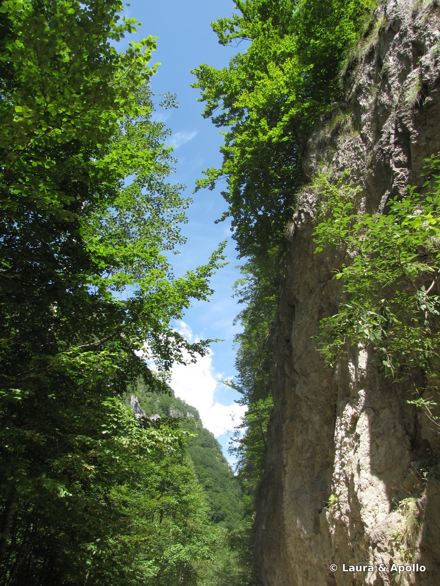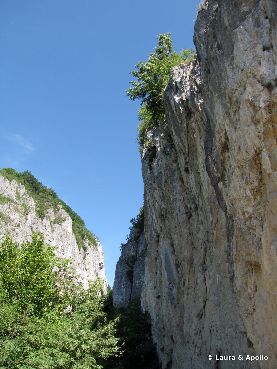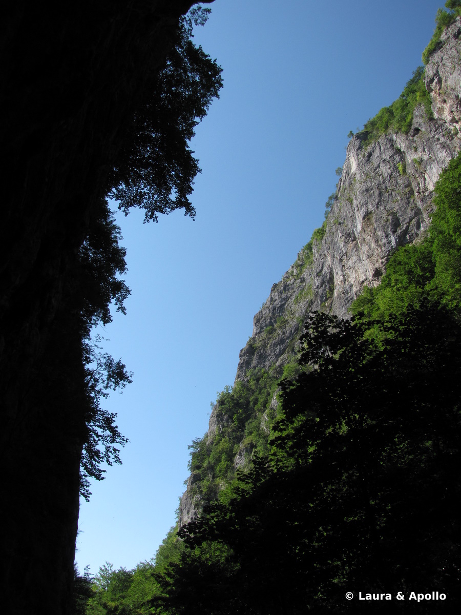 Ne-am continuat drumul spre Târgu Jiu, până când la orizont au apărut siluetele munților, despărțiți de o vale adâncă. Prima impresie promitea un peisaj spectaculos, așa că n-am stat mult pe gânduri și am pornit spre Polovragi, satul aflat la intrarea în cheile Oltețului. Drumul asflaltat se termină la Mănăstirea Polovragi, unul din cele mai frumoase lăcașuri de cult din Oltenia.