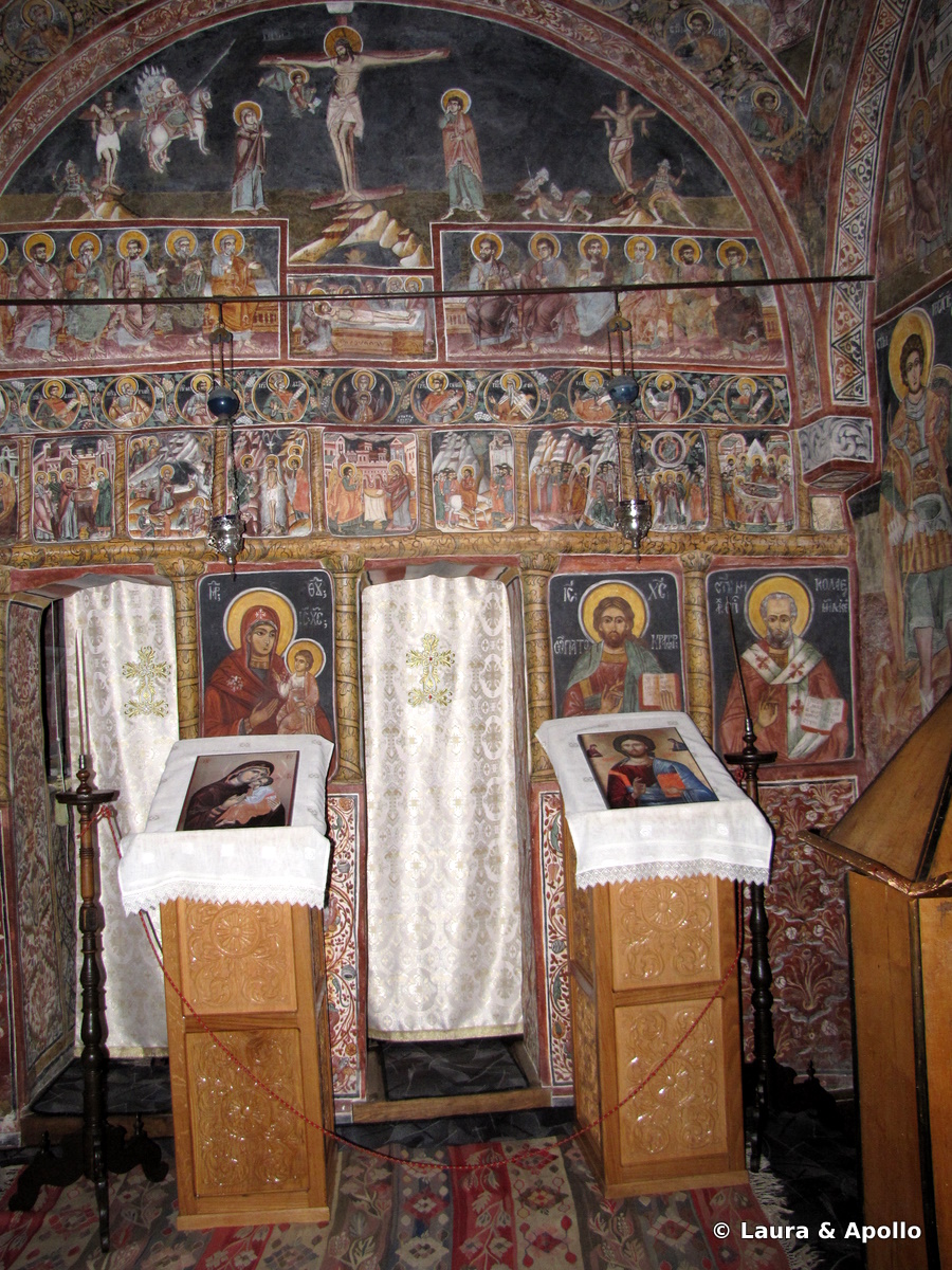 La data vizitei noastre tocmai începuseră lucrările de restaurare în biserică, așa că ne-am străduit să fotografiem printre schele. Am vizitat din nou mănăstirea în vară anului 2012 și am aflat că lucrările au avansat, însă biserică nu se mai putea vizită.